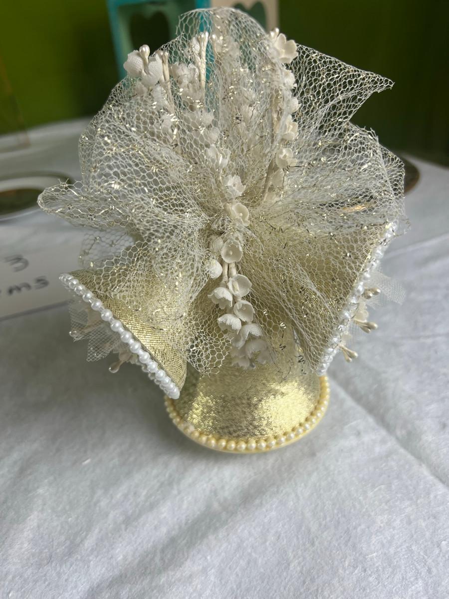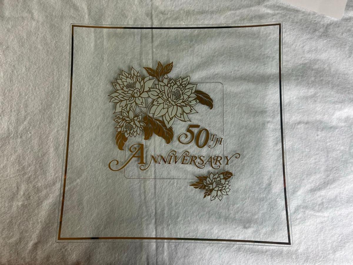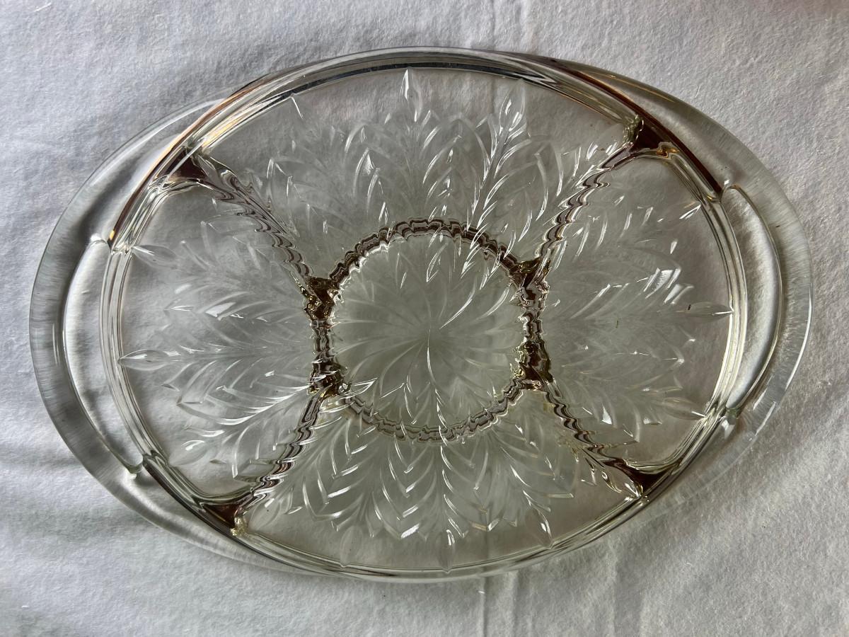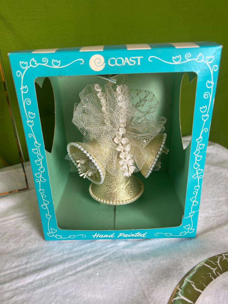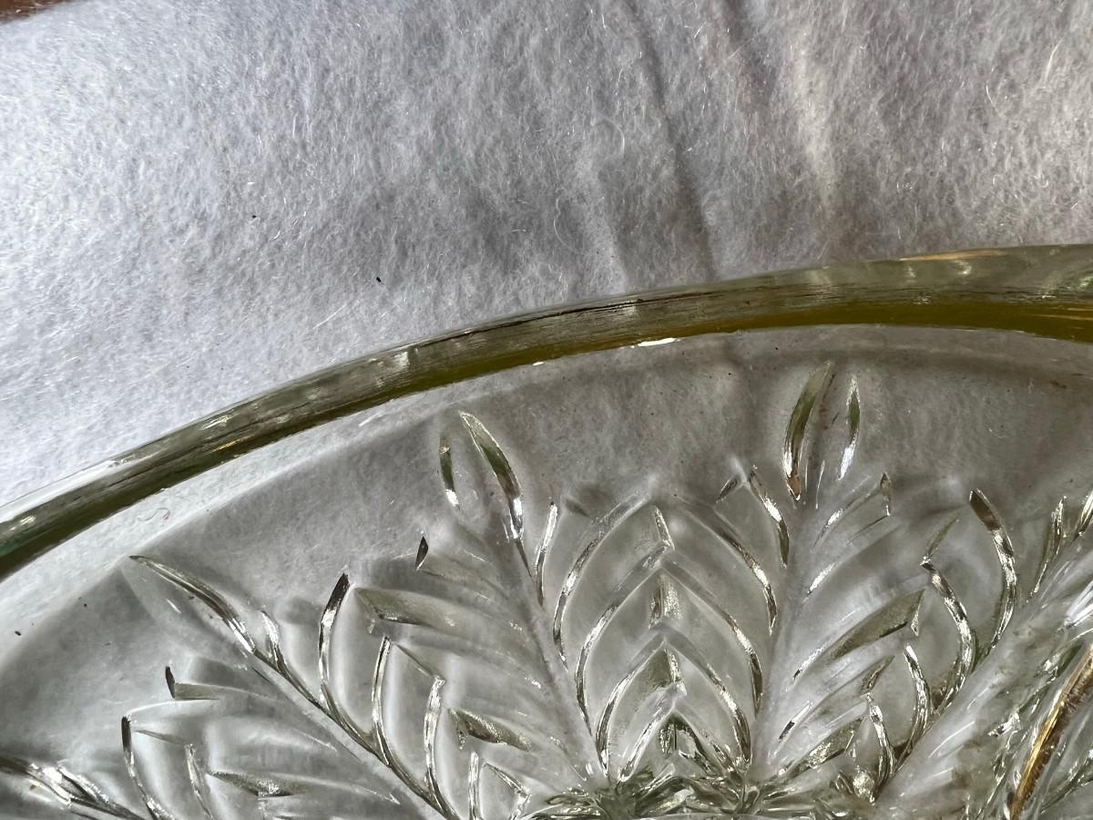 Platter 16.5" x 11" some gold missing divided platter, Plate 8.5" crackle gold around edge made in Italy Christallerie, Plate 6" diameter 24kt edge made in Japan, bowl leaf 2" x 5.5" x 8", layered plate gold edges and comes apart for storage, Anniversary plate, and cake topper