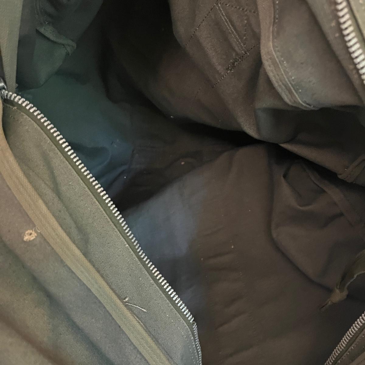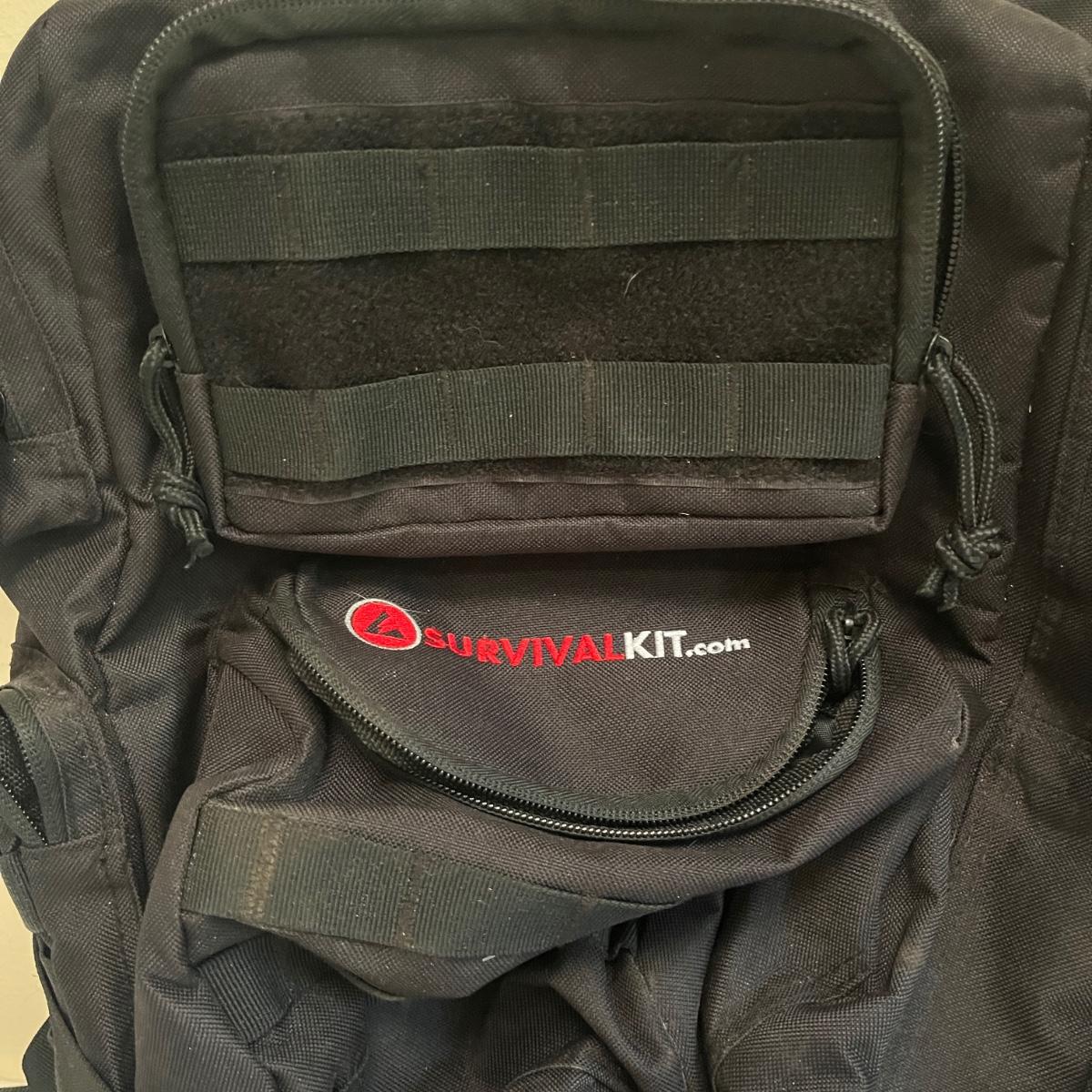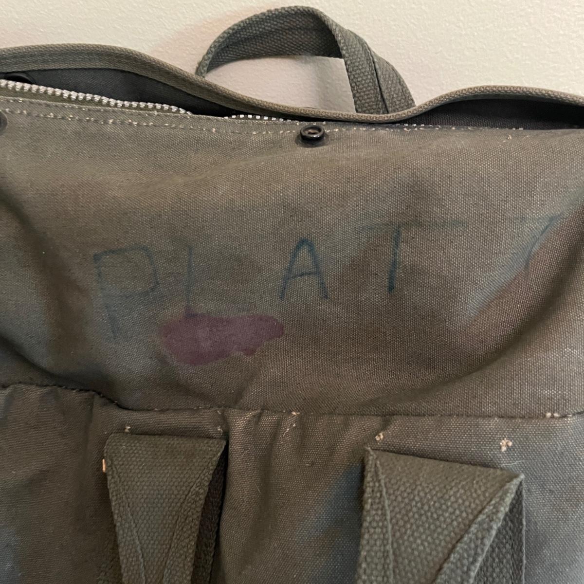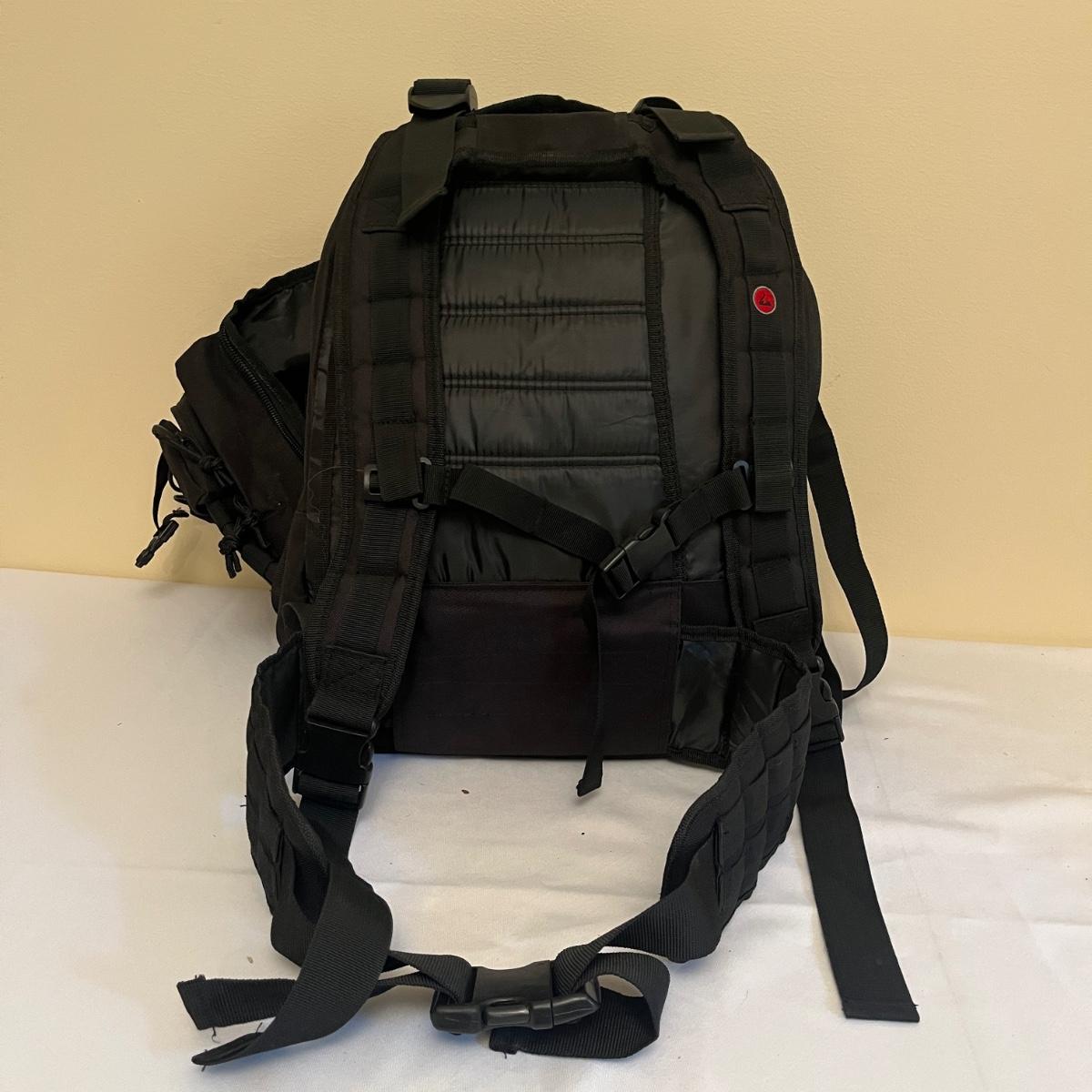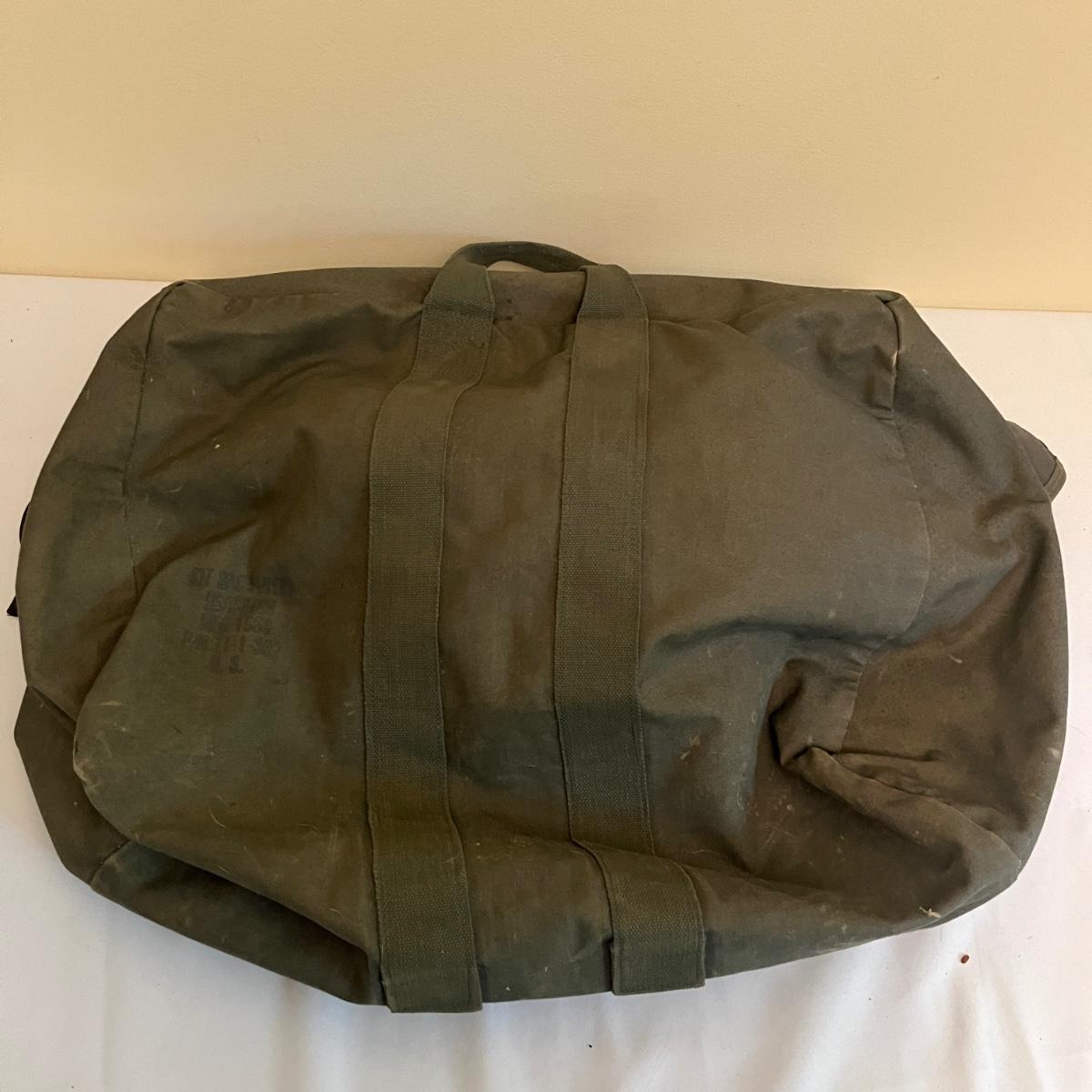 Lot includes a Platypus Thunderhead backpack, Survival Kit backpack and one army style canvas bag. Canvas bag measures 22” x 12” x 22”H. Bag has writing and a stain, see pictures.