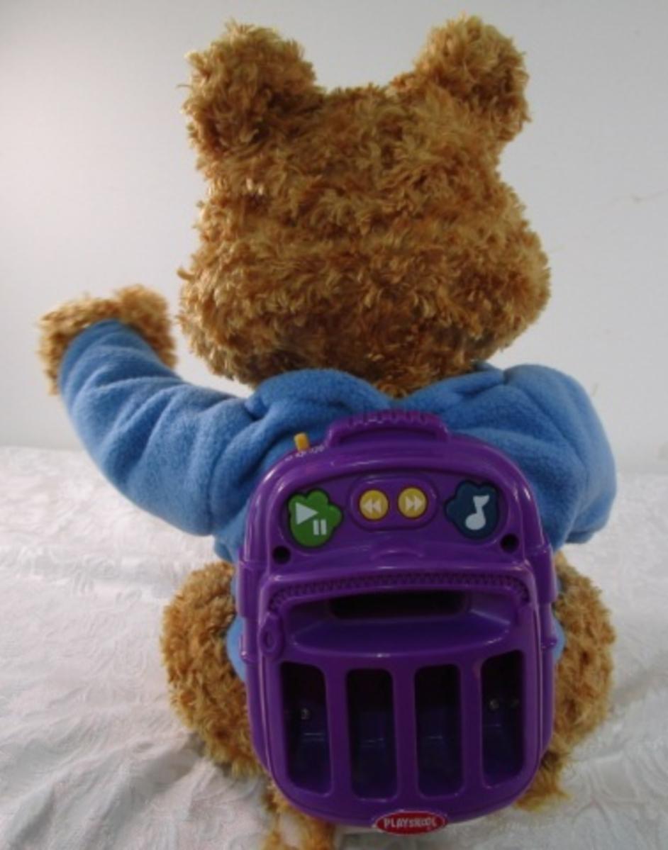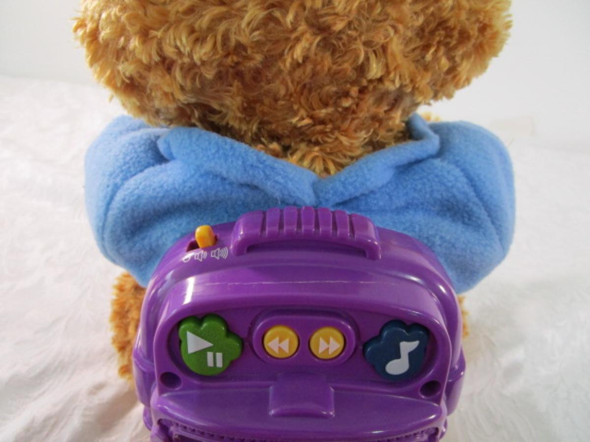 Bear only, does not have additional inserts or books. Sings, talks, nods his head, raises his hands, wiggles his ears, eyes open & close, mouth moves, head moves, has games, takes 4D batteries not included, tested & works