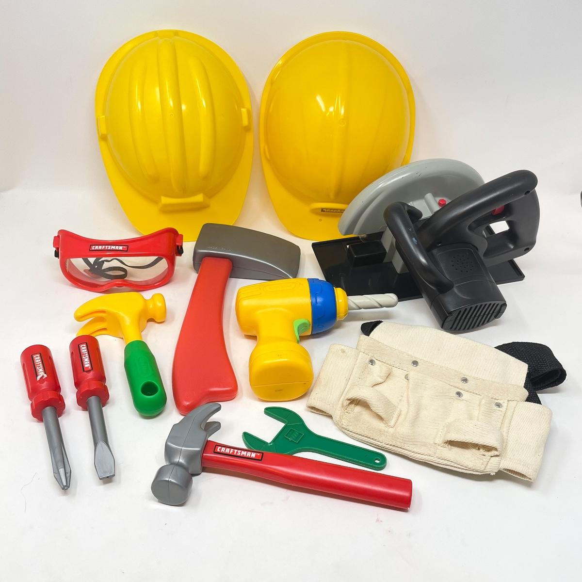 PLAY TOOLS & GEAR BUNDLE W/ BATTERY-OPERATED SAW (CRAFTSMAN & LITTLE TIKES)