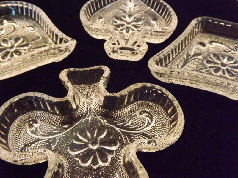 Playing Card Suit Pressed Glass Snack Dishes