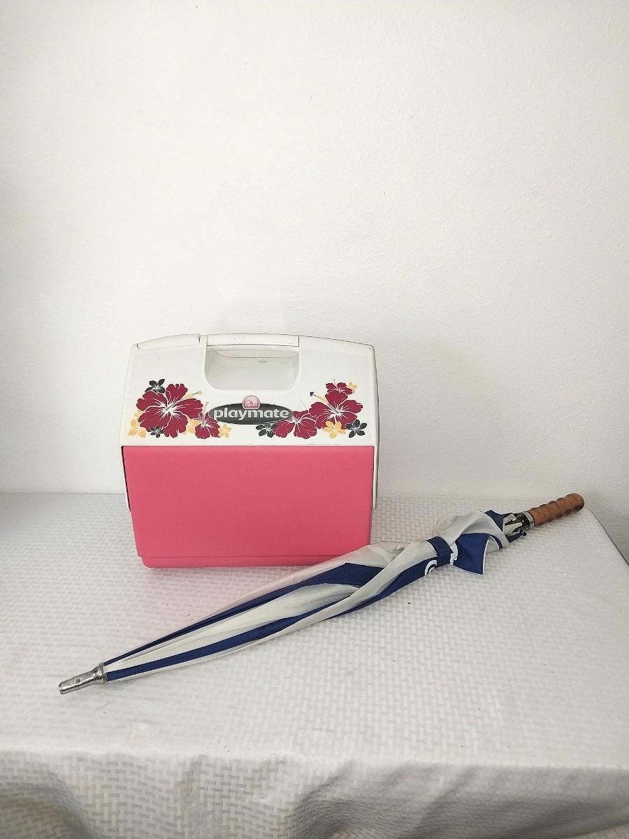 PLAYMATE COOLER AND LARGE UMBRELLA