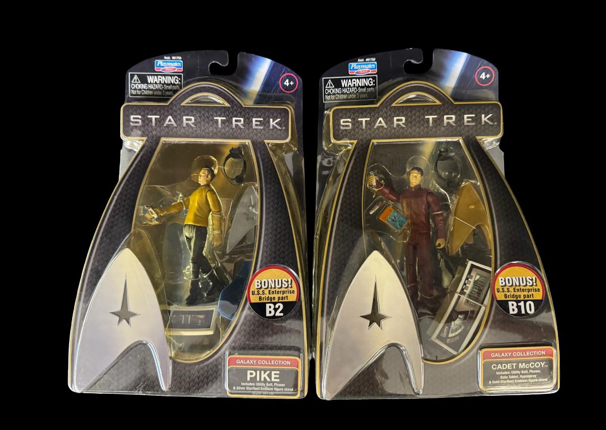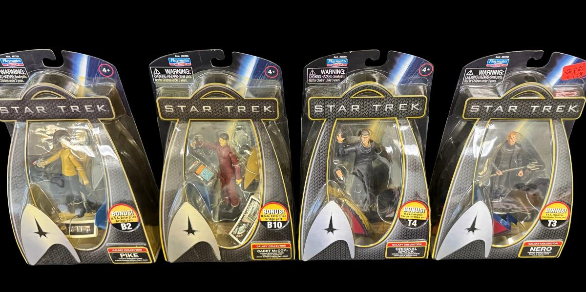 Includes Nero, Original Spock, Cadet McCoy, and Pike. Total of four pieces. Each figure comes with accessories. All are in the original packaging.