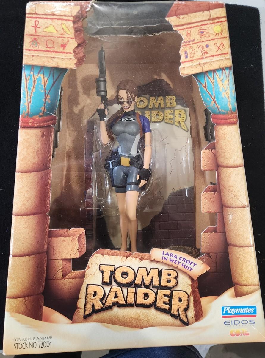 Playmates Toys Tomb Raider Lara Croft in Wet Suit with Two Removable Pistols Harpoon Gun and Diorama Display Base Action Figure