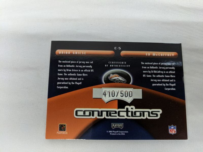 Playoff 2002 Brian Griese & Ed McCaffrey Broncos Football Card With Memorabilia