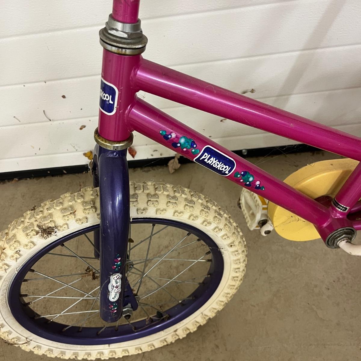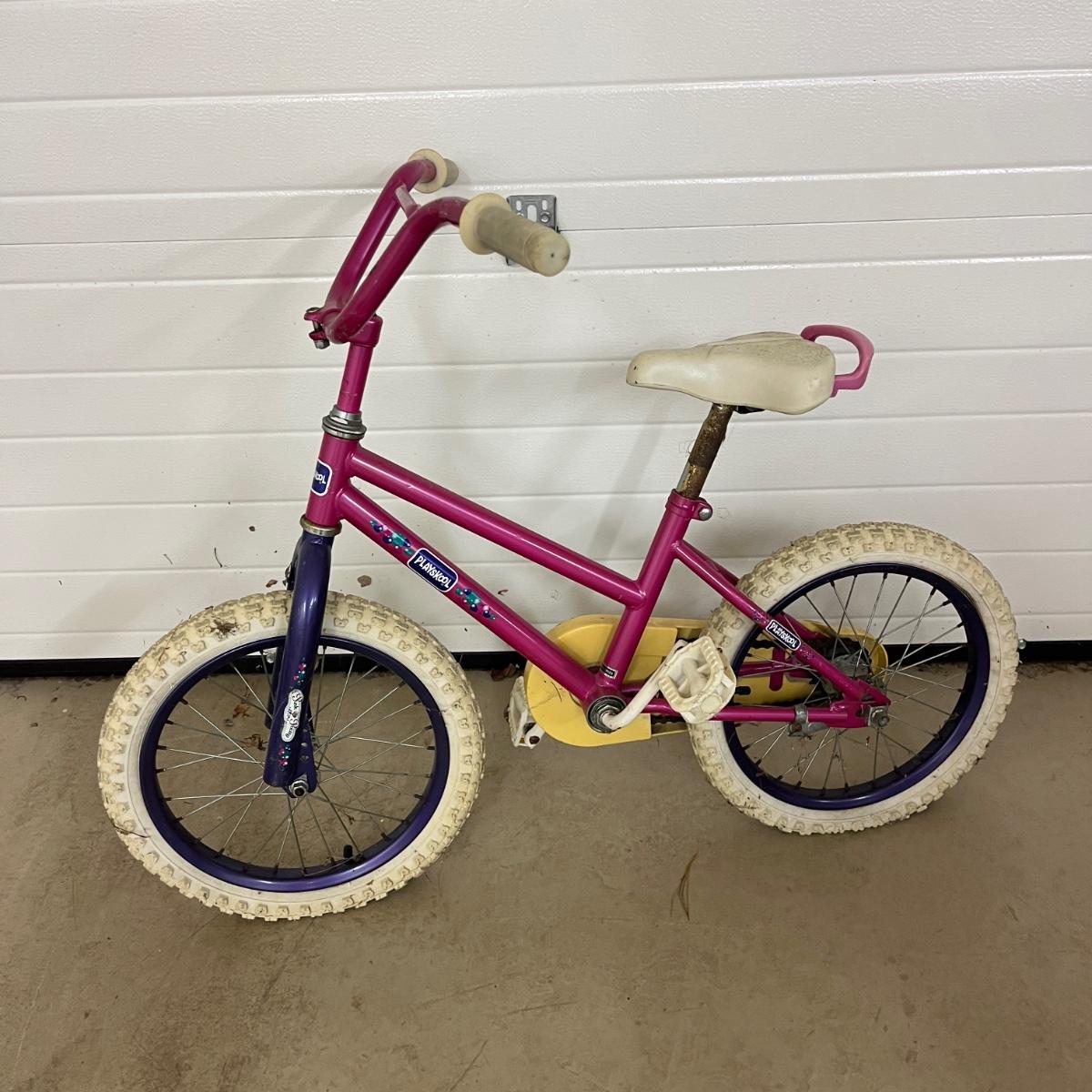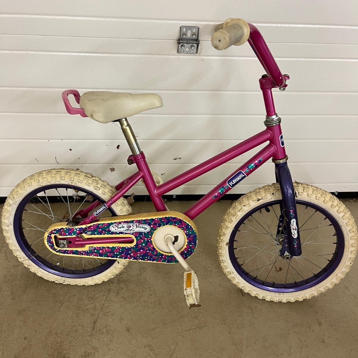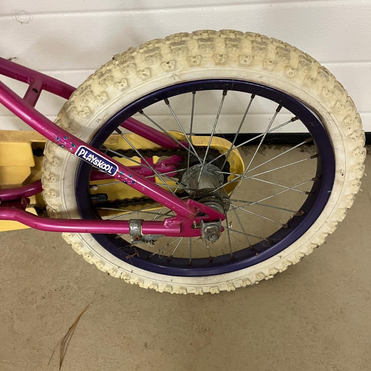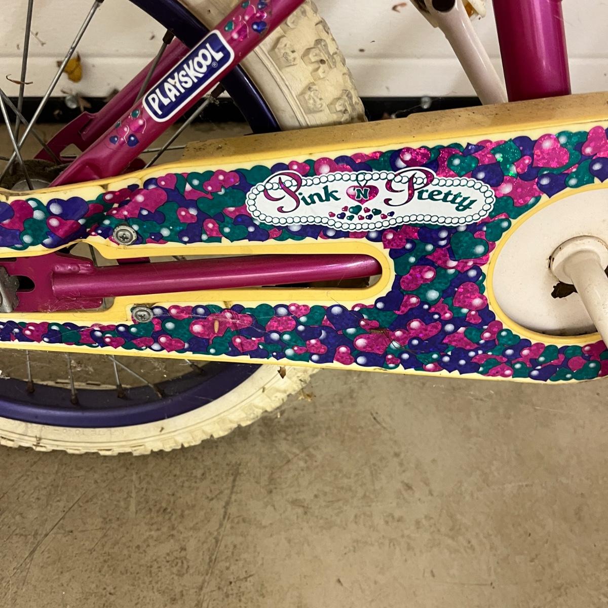 Lot includes a Playskool Pink N Pretty bicycle with 16” x 2.125” tires that are both flat.
