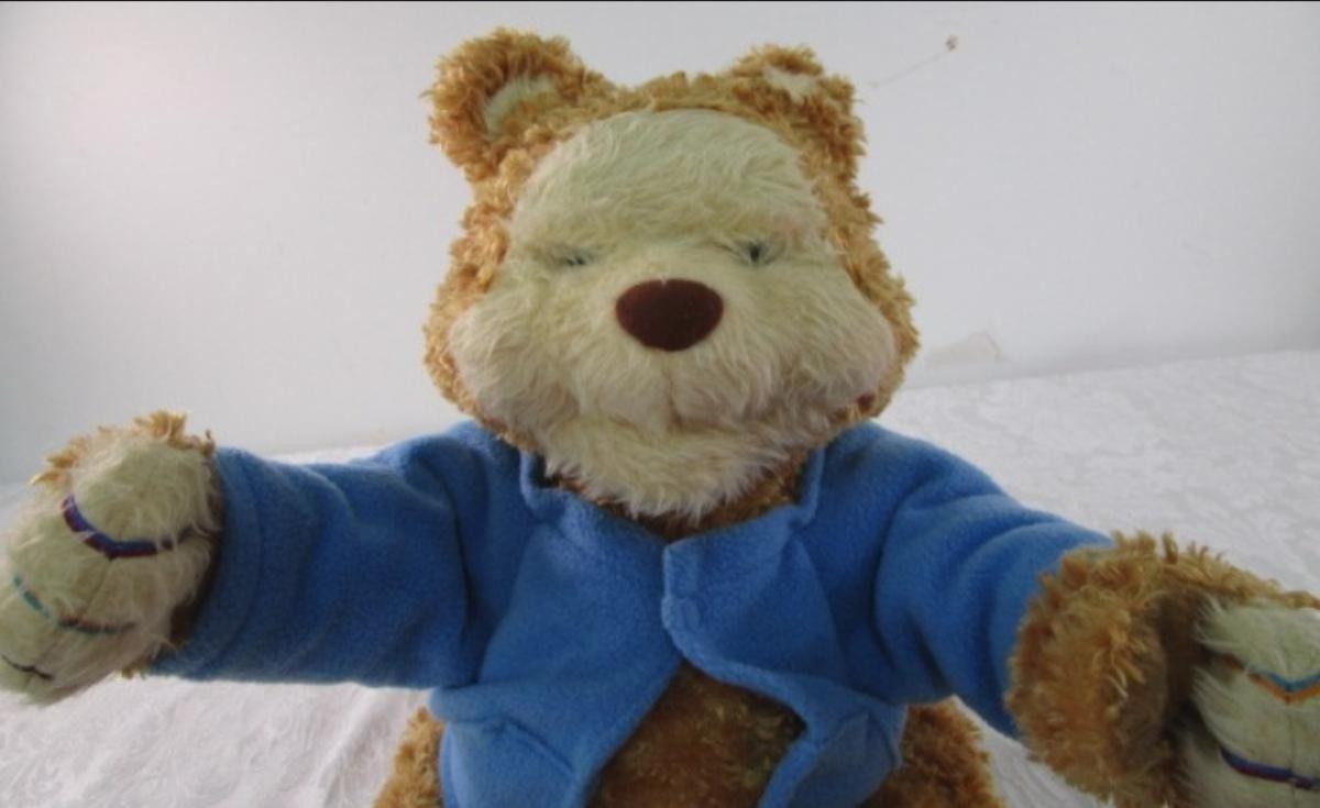 A story-telling toy from Hasbro, see pictures, 9-1/2" x 12" x 14", bear only does not have additional books or inserts. Sings, talks, nods his head, raises his hands, wiggles his ears, eyes open & close, mouth moves, has games, takes 4 D batteries not included, tested & works