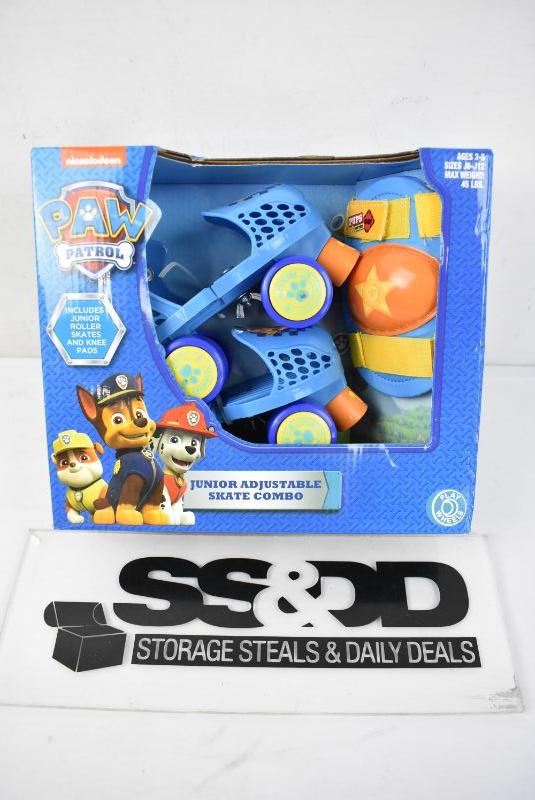 PlayWheels Paw Patrol Kids Roller Skates, Junior Size 6-12 with Knee Pads - New