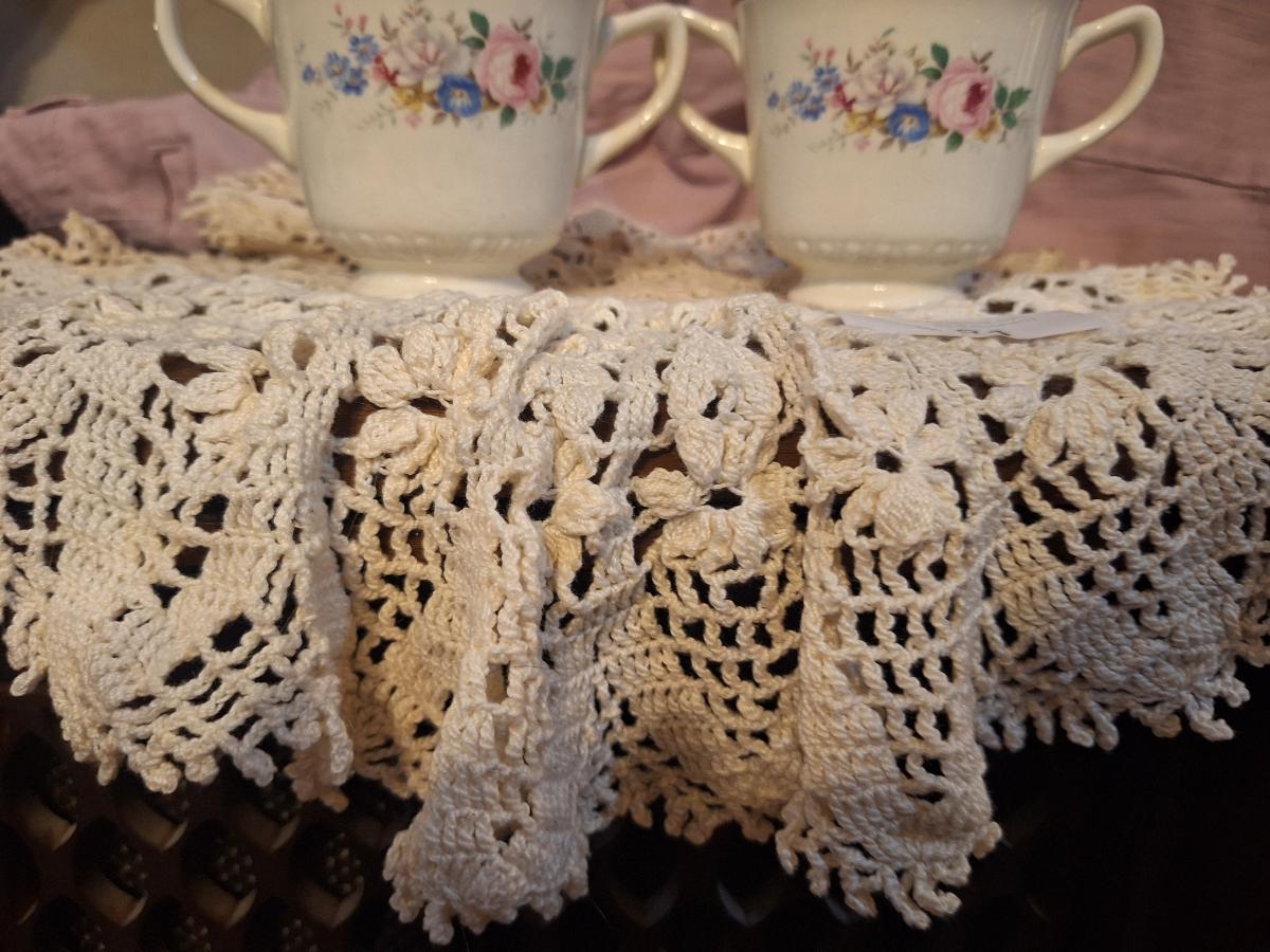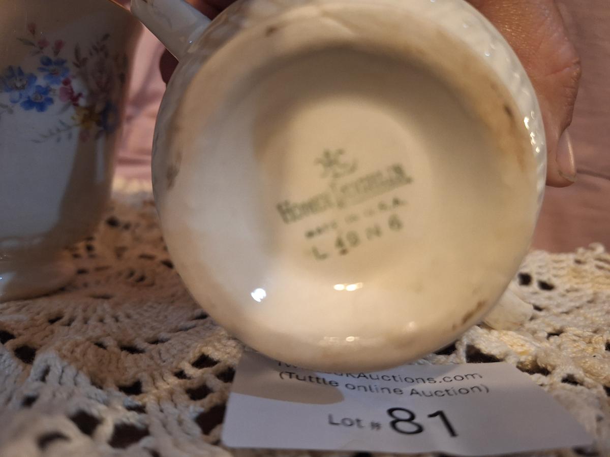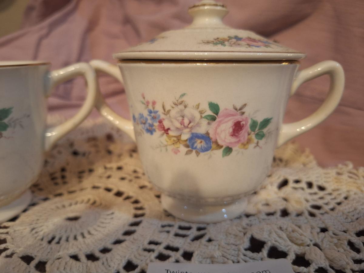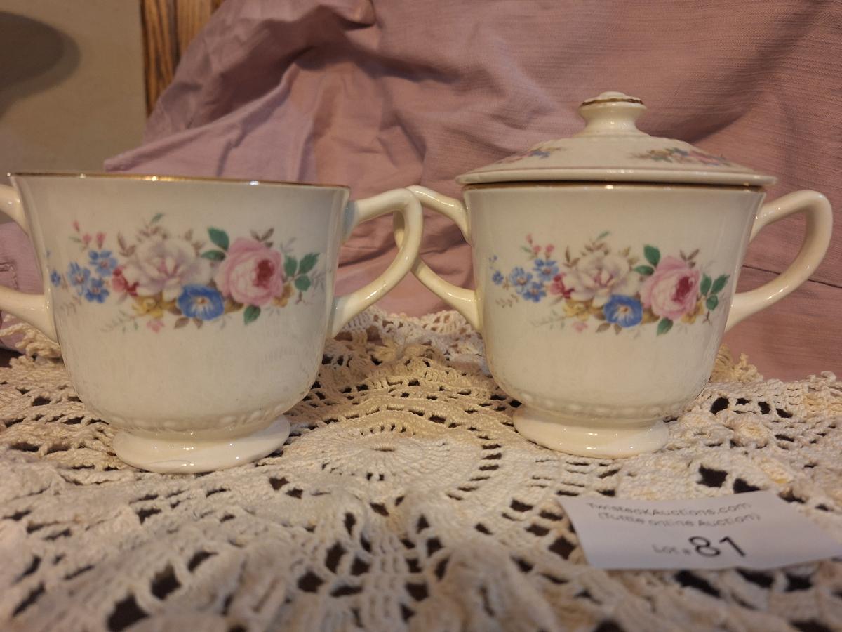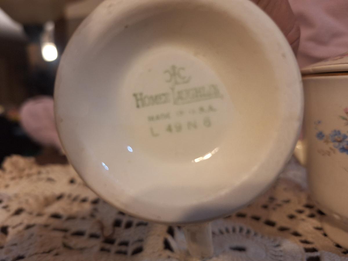 Homer Laughlin sugar and creamer bowl with a doilies too.