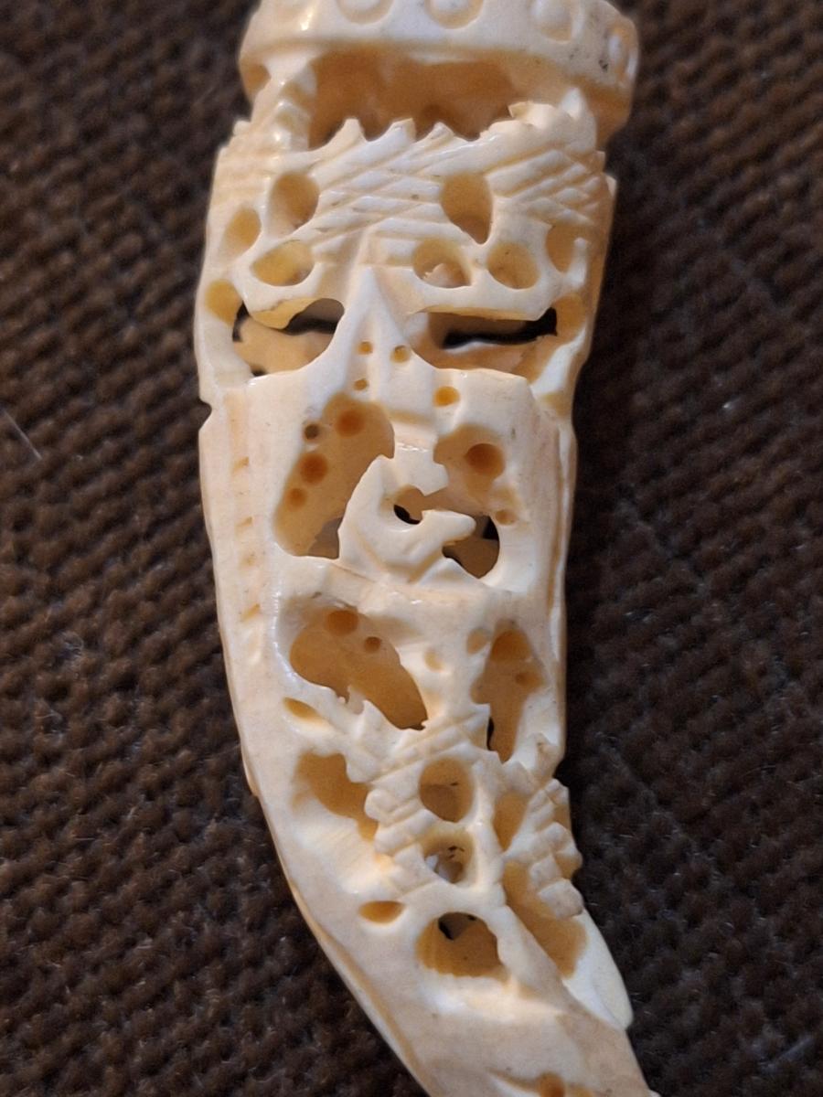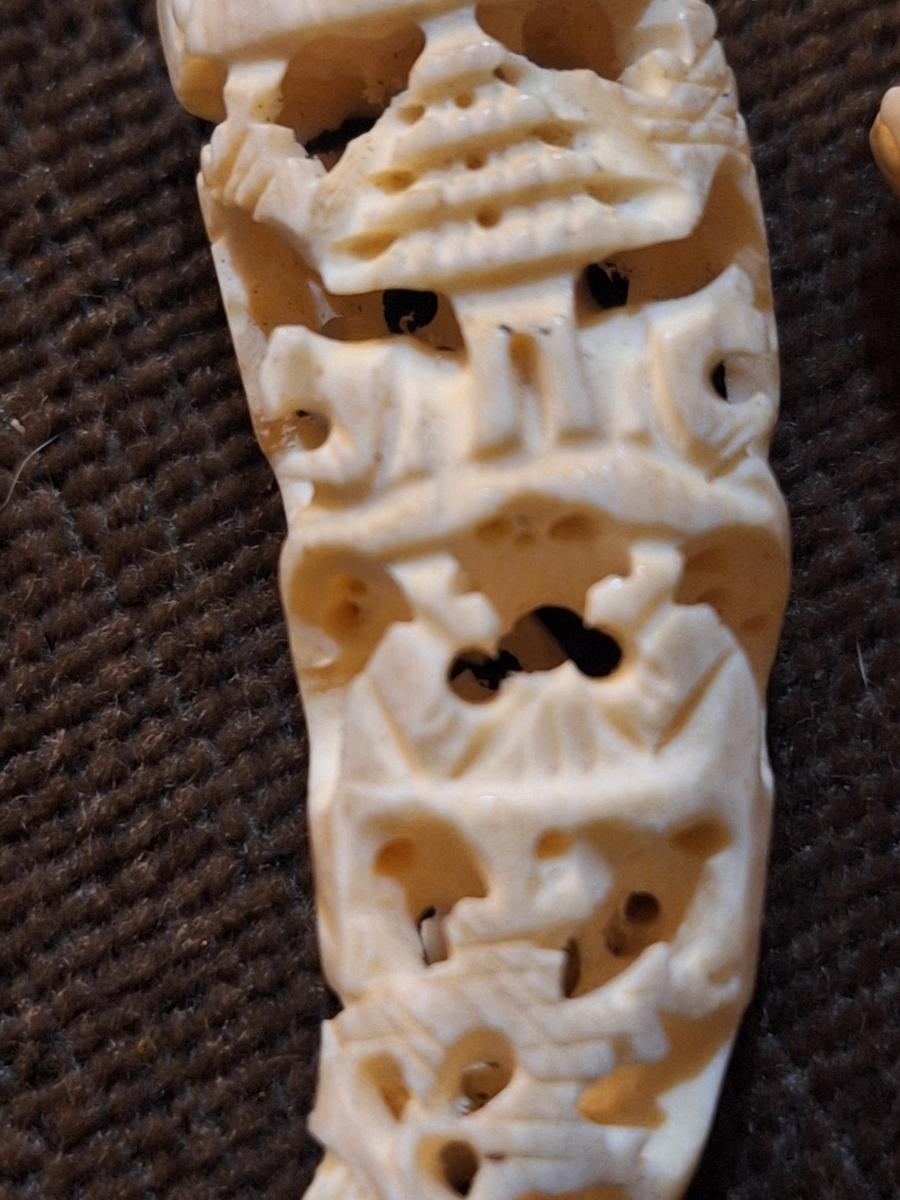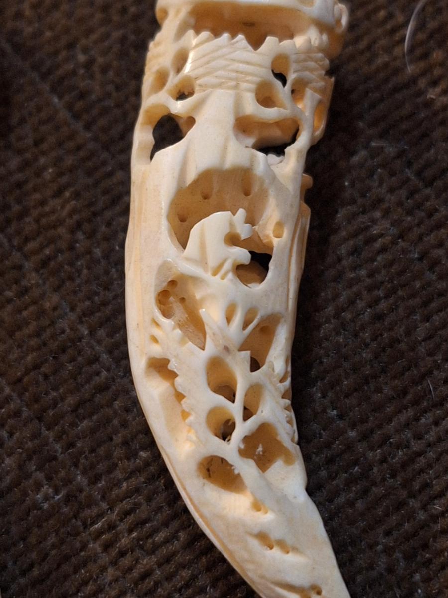 set of 2 carved hippos teeth- we aren't sure how to verify this- they are part of an estate and simply were in a Ziplock back labeled hippo. It looks like they seller might have paid $400 for them in the 70s or 80s from the scribbled notes- but again…we have no way to verify this. so please look over photos.