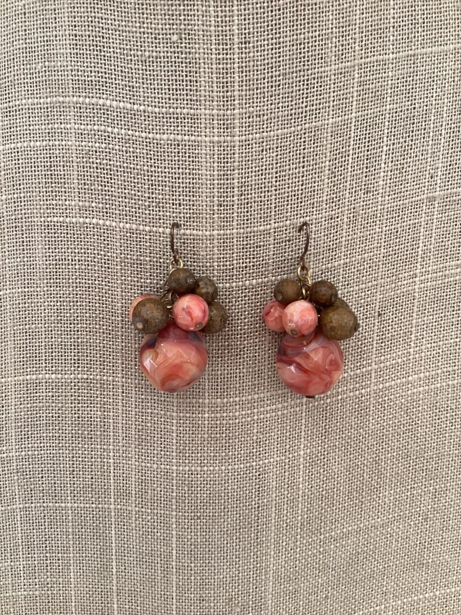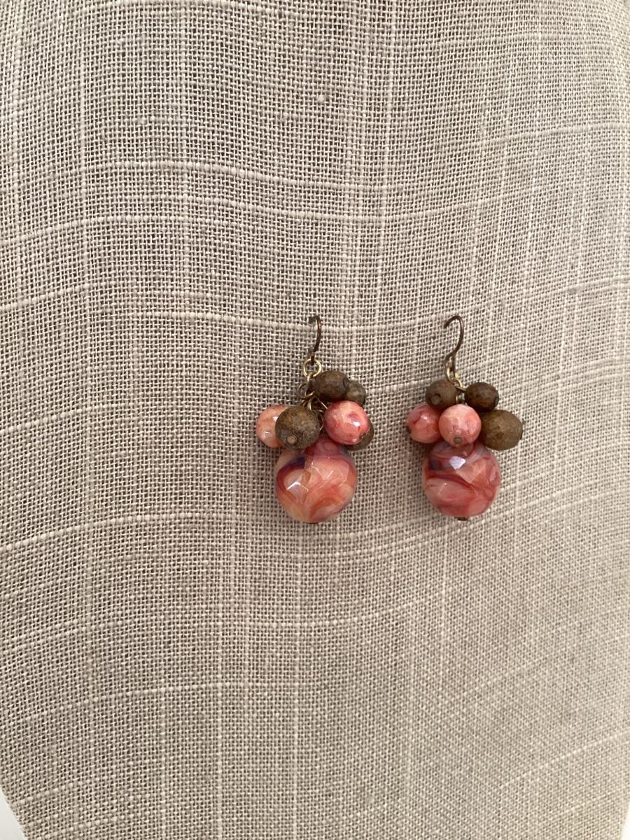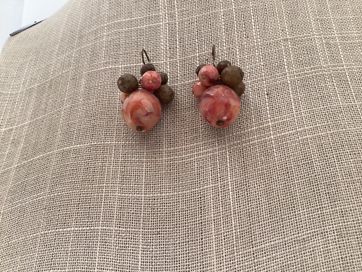 Vintage Beaded earrings red and brown