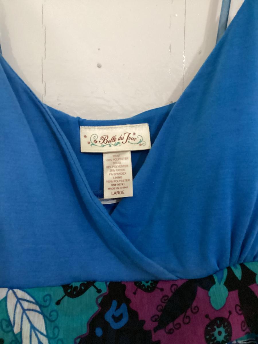 Belle Du jour Blue flower spaghetti strap dress L
