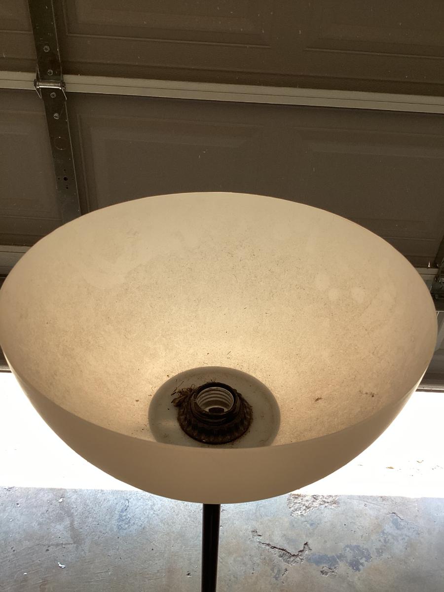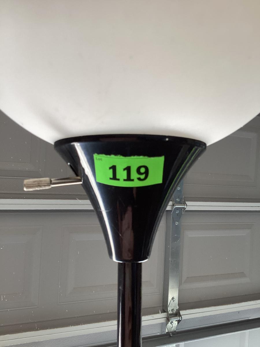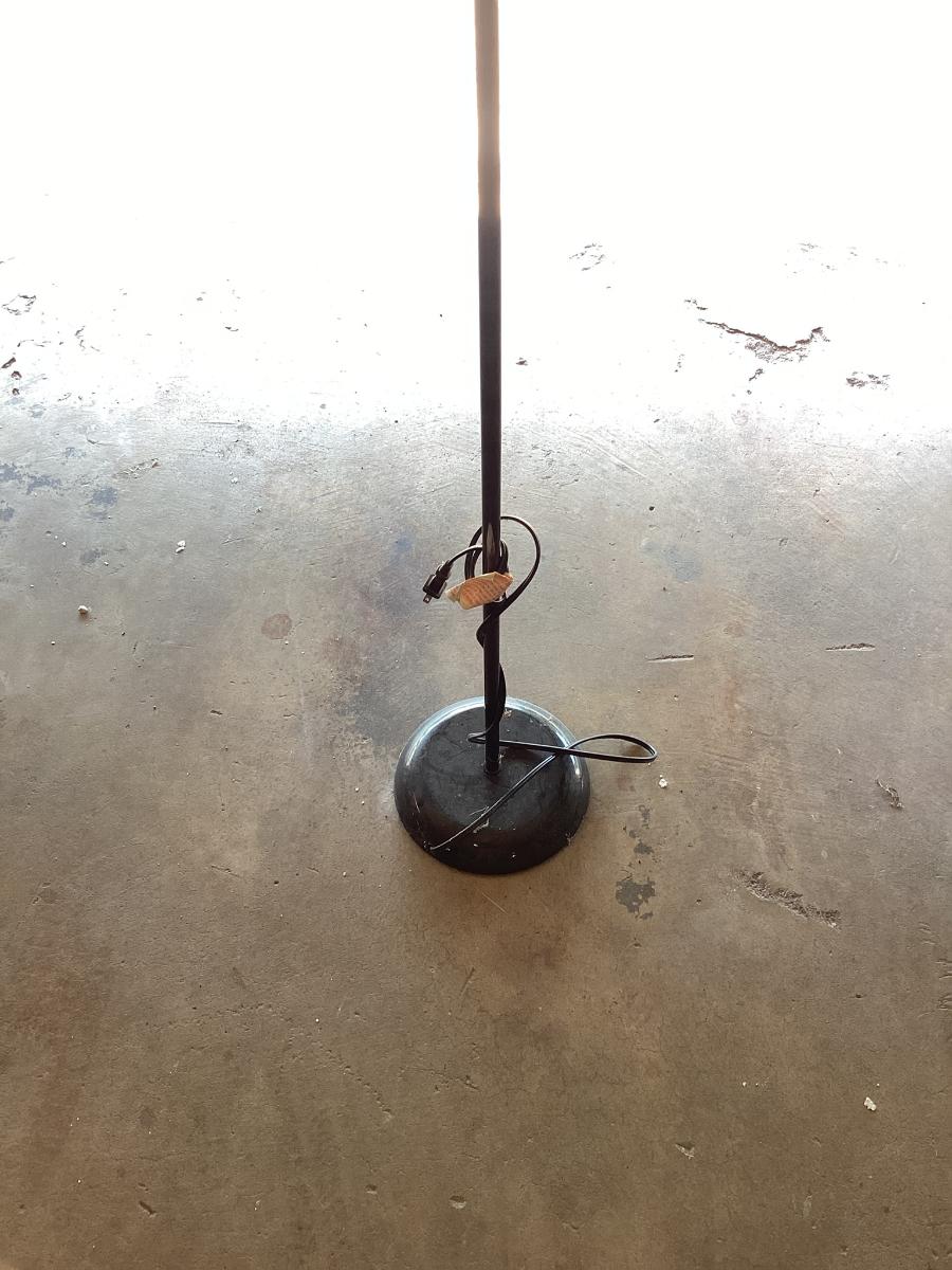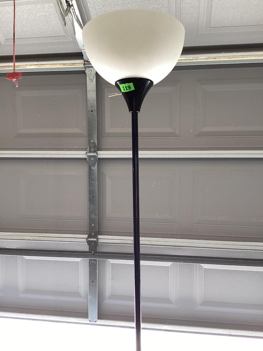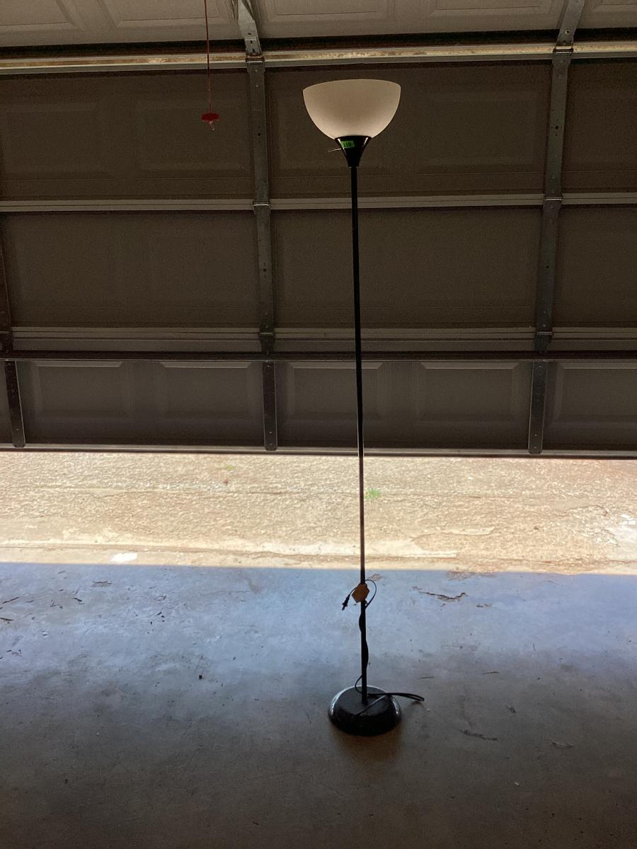 6 ft tall simple white and black lamp with 10 inch plastic shade