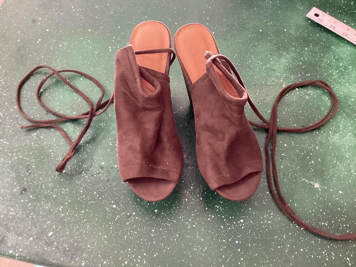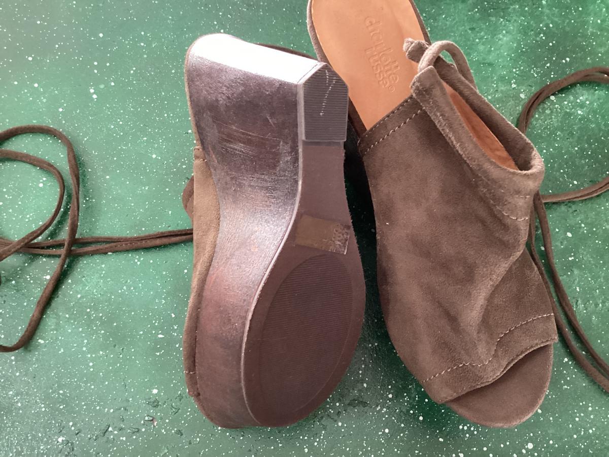 women's size 9 Charlotte rouse strappy tie wedge heels see all photos, if any damage was visible to us we made sure to capture it in a photo.