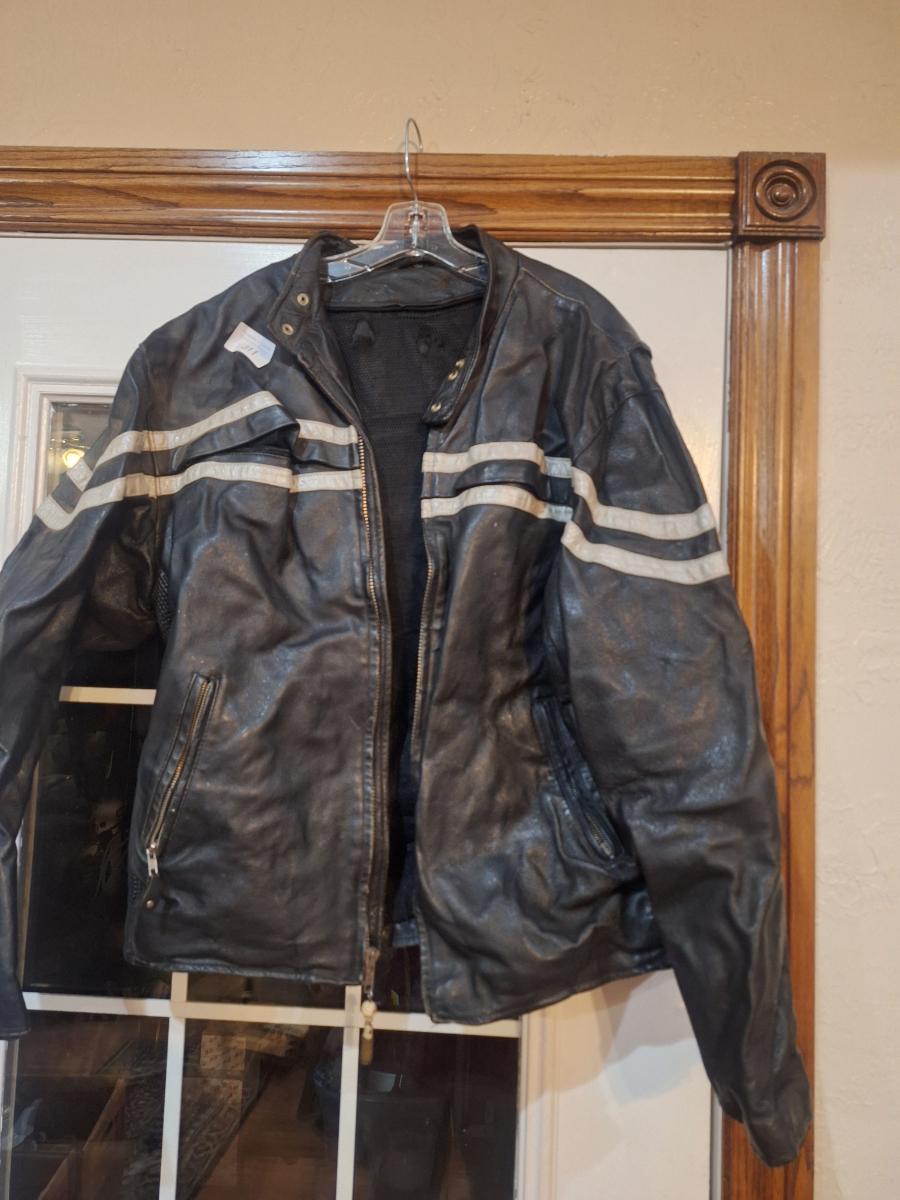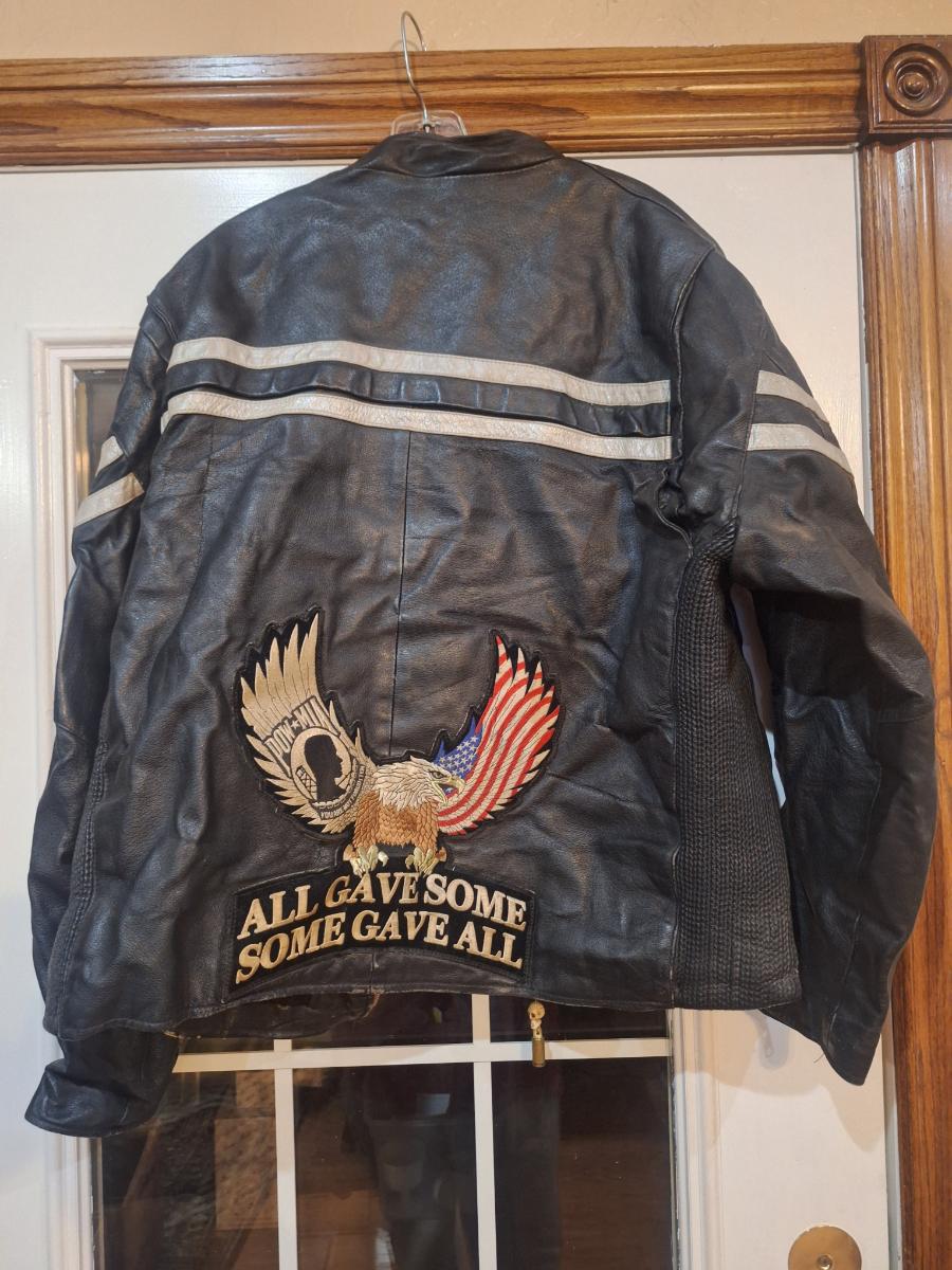 size XXXL Leather motorcycle riding jacket with eagle patch