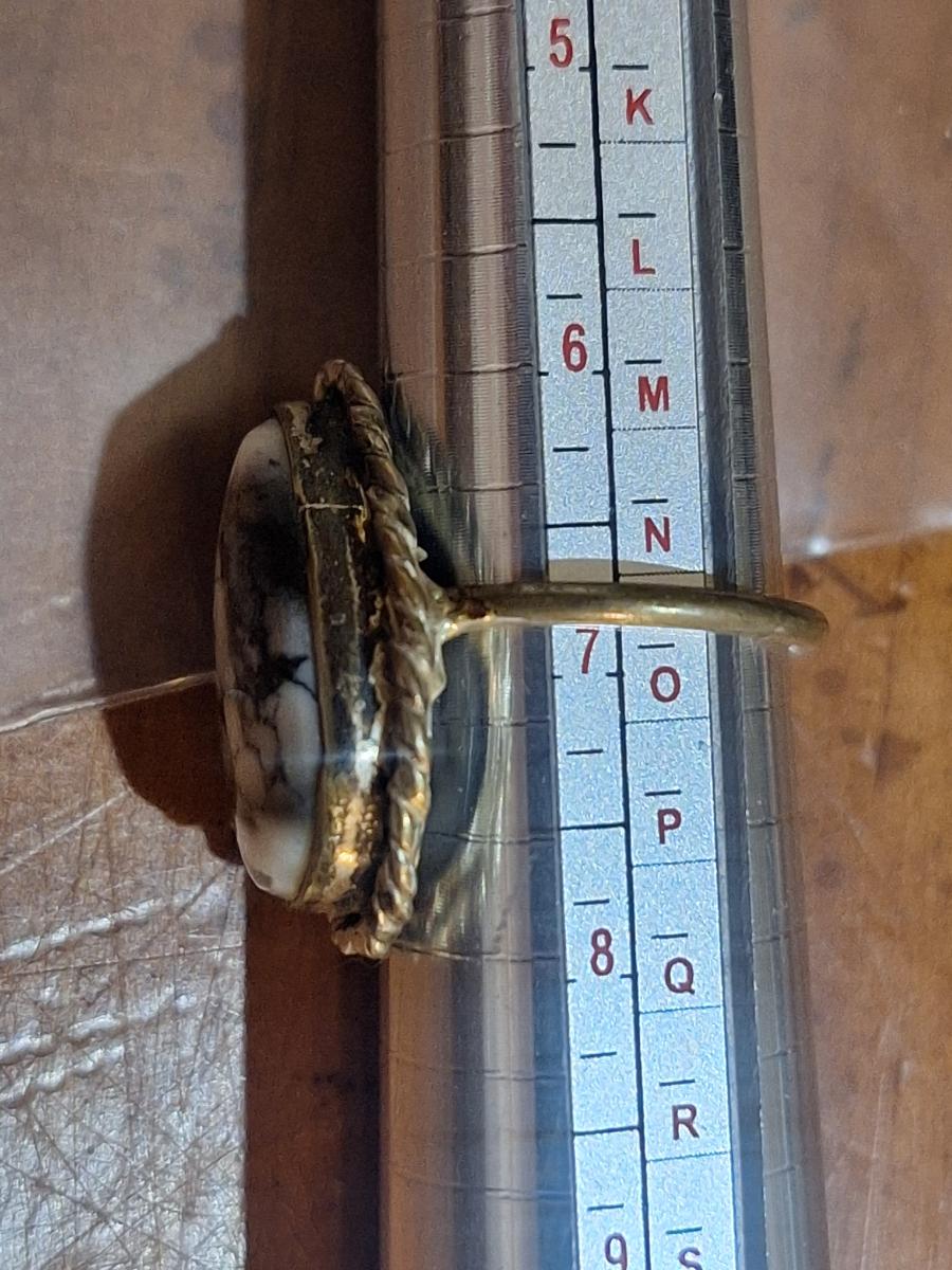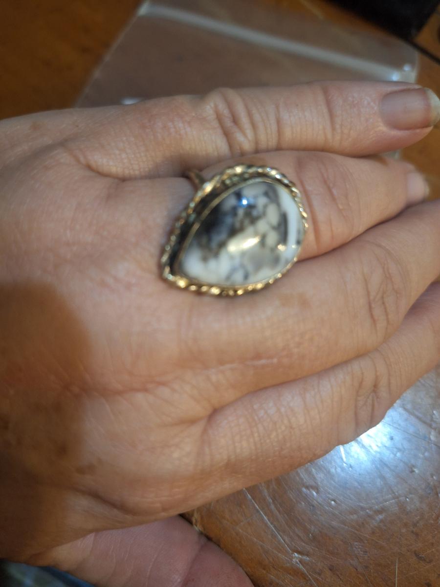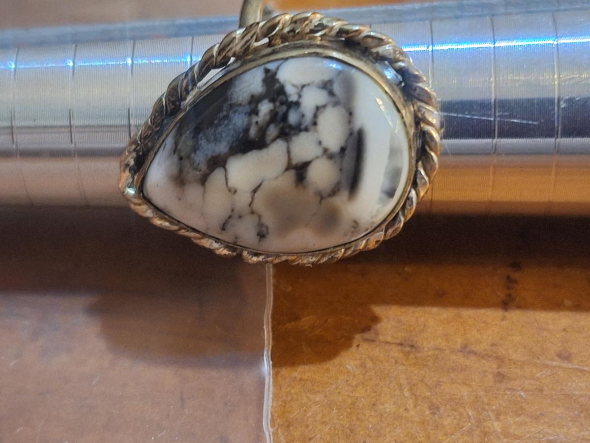 Teardrop shaped sterling silver ring with white buffalo stone size 7