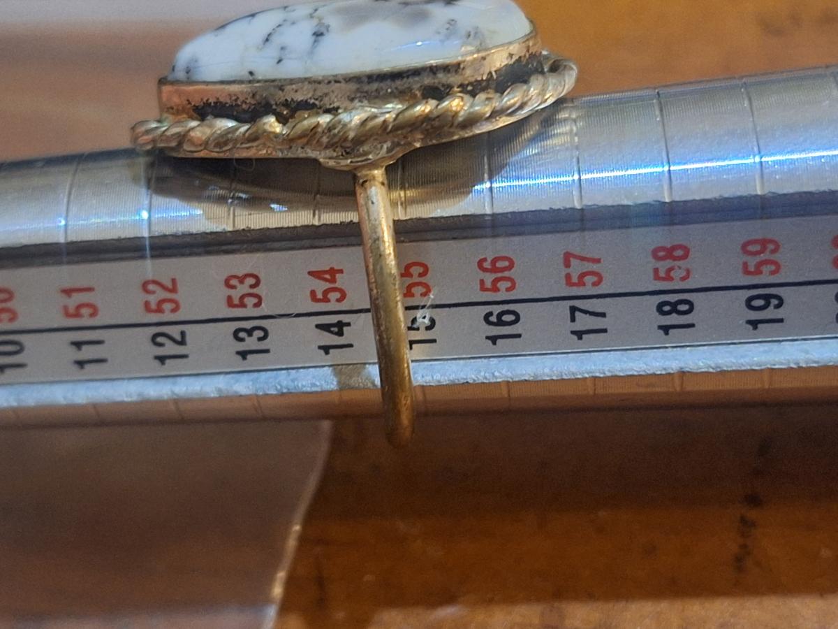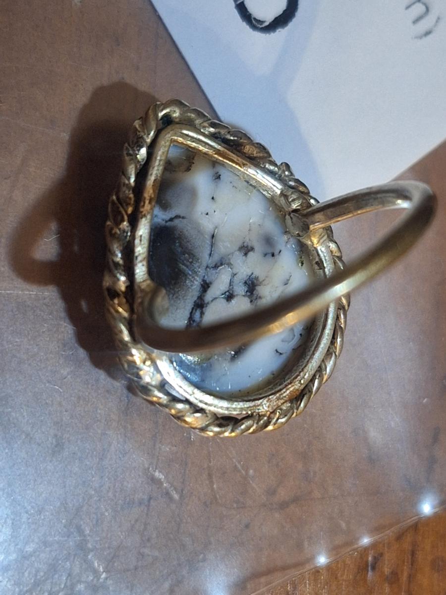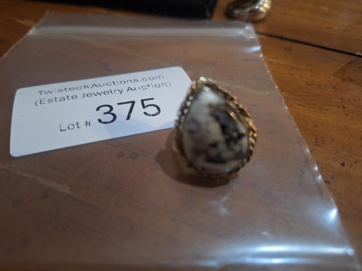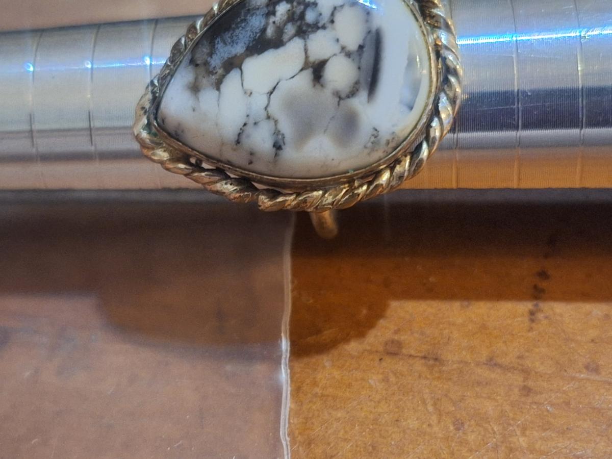 Teardrop shaped sterling silver ring with white buffalo stone size 7