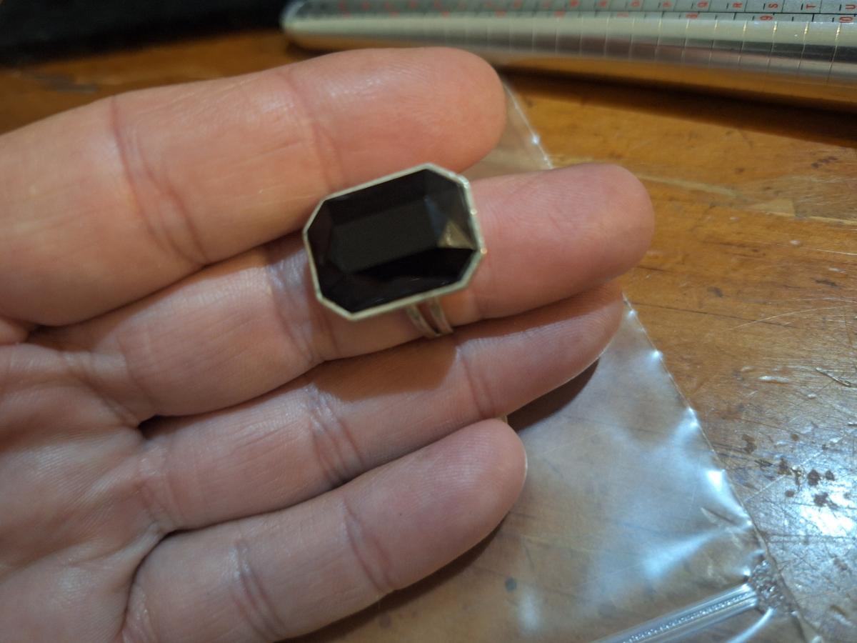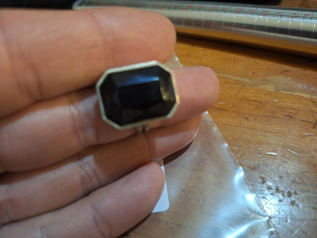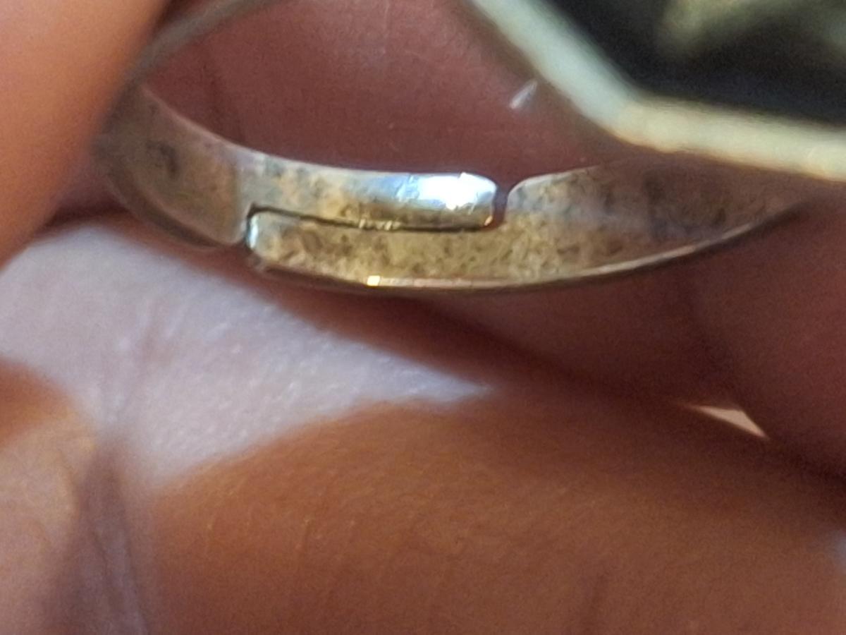 size 7 ring siwht adjustable band and black ish stone