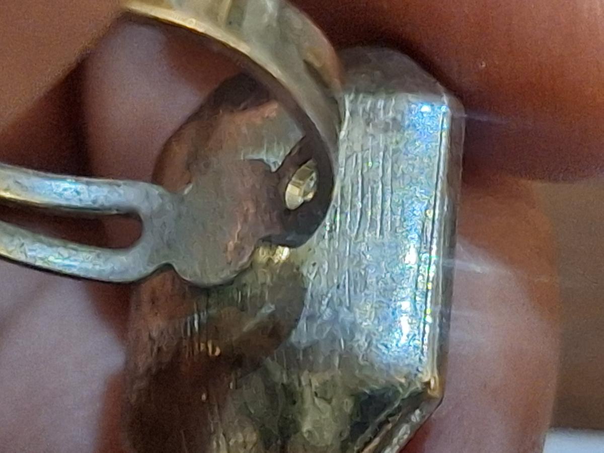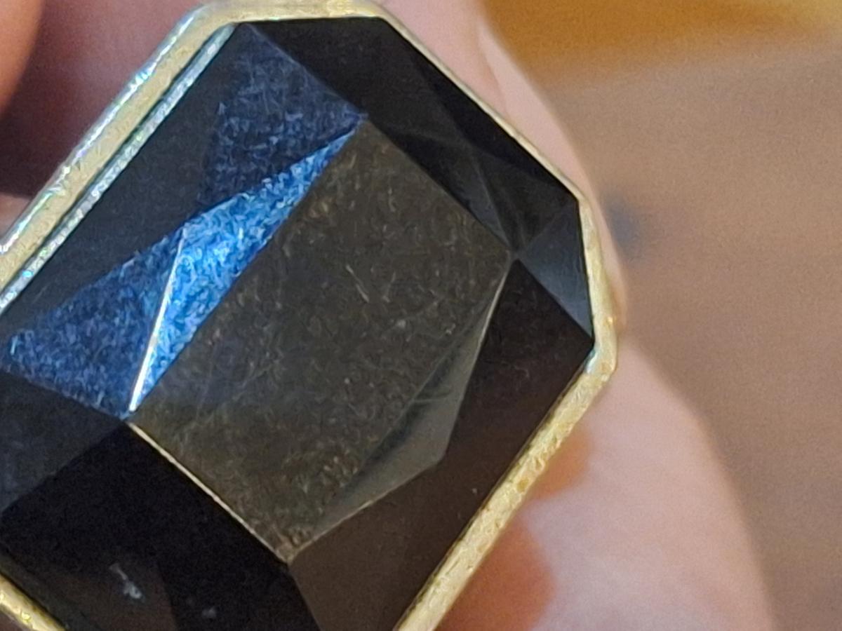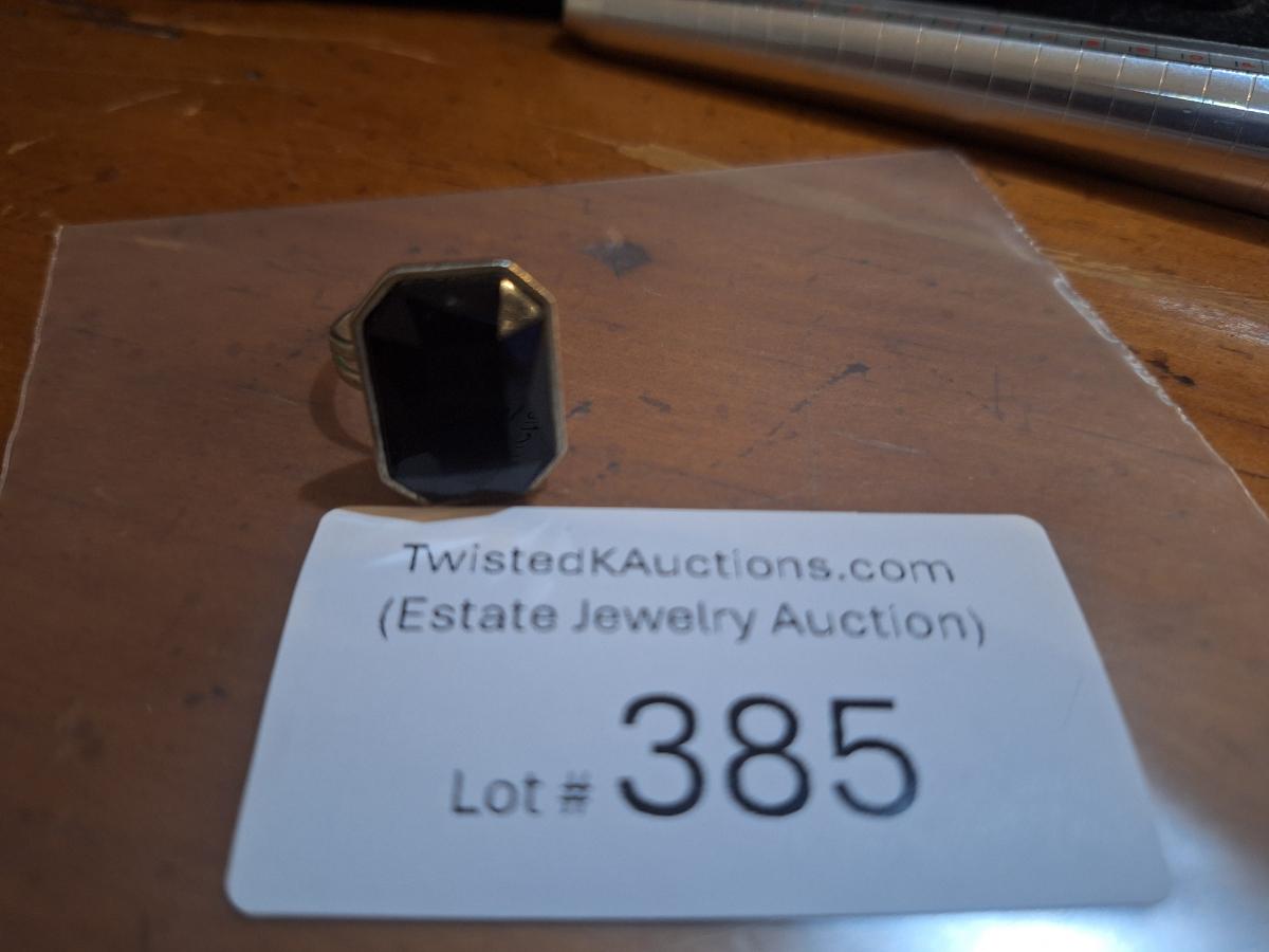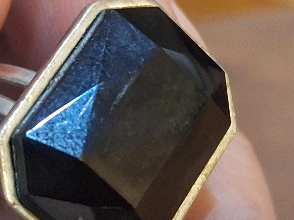 size 7 ring siwht adjustable band and black ish stone