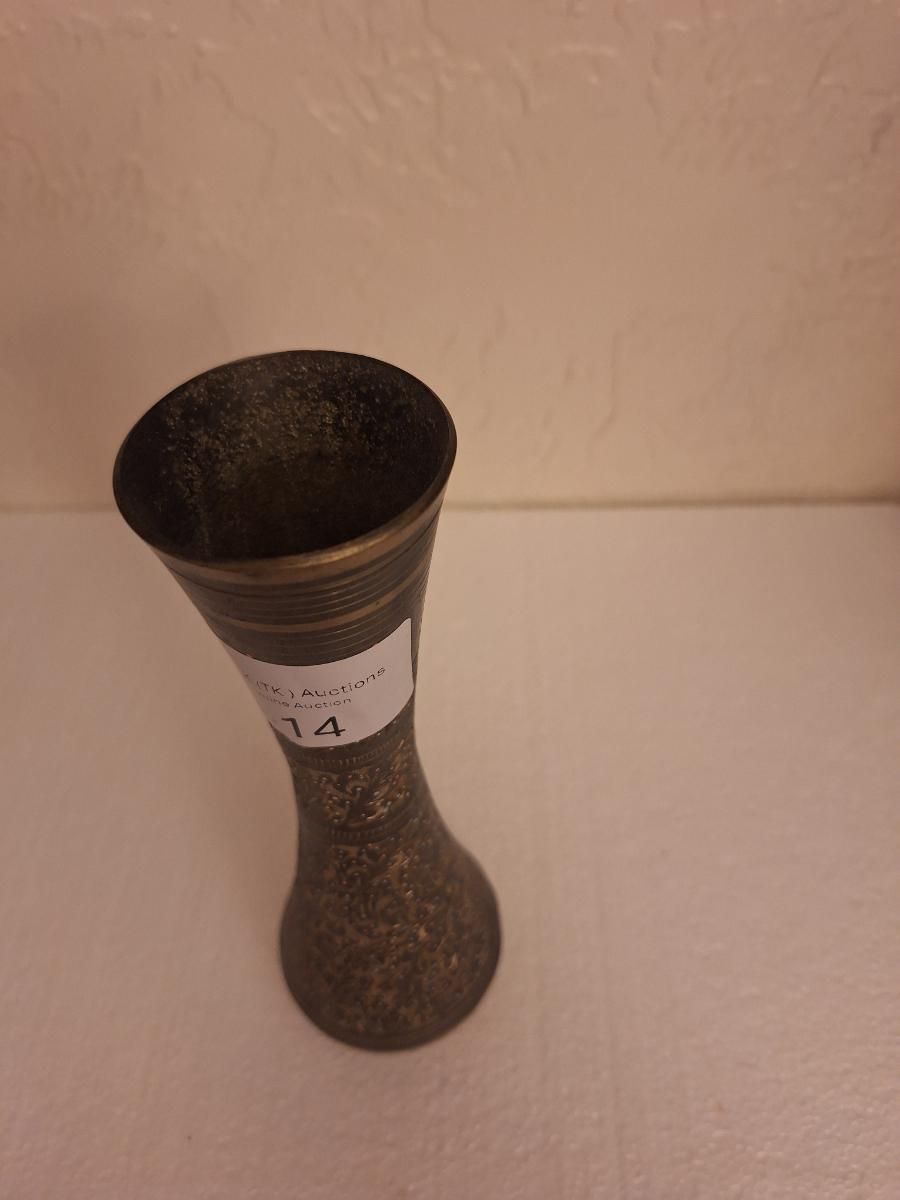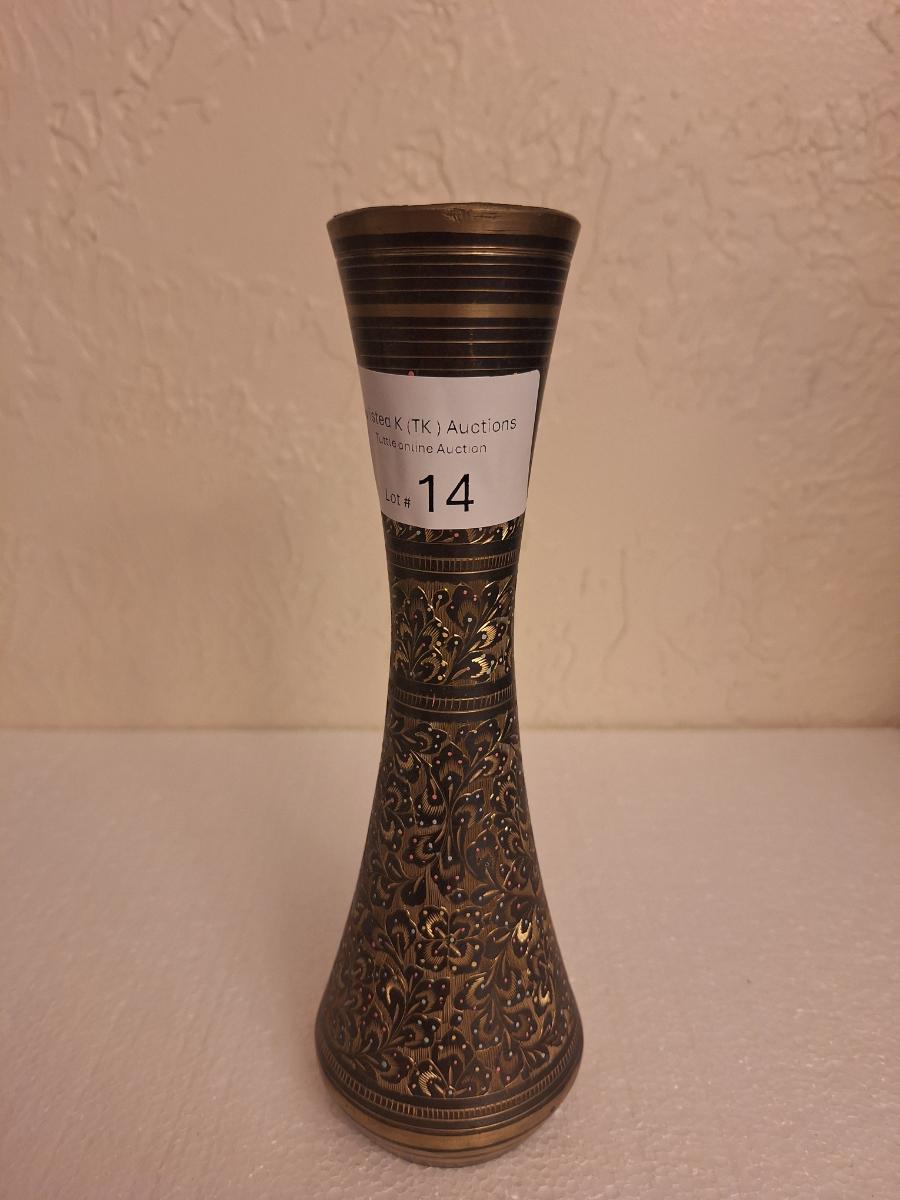 beautiful brass vase- we've had similar vases at the last 3 in person estate sales so if you bought those you might one this one to go with. They look to us to be the same.