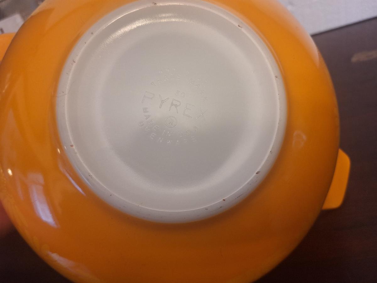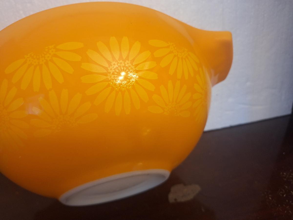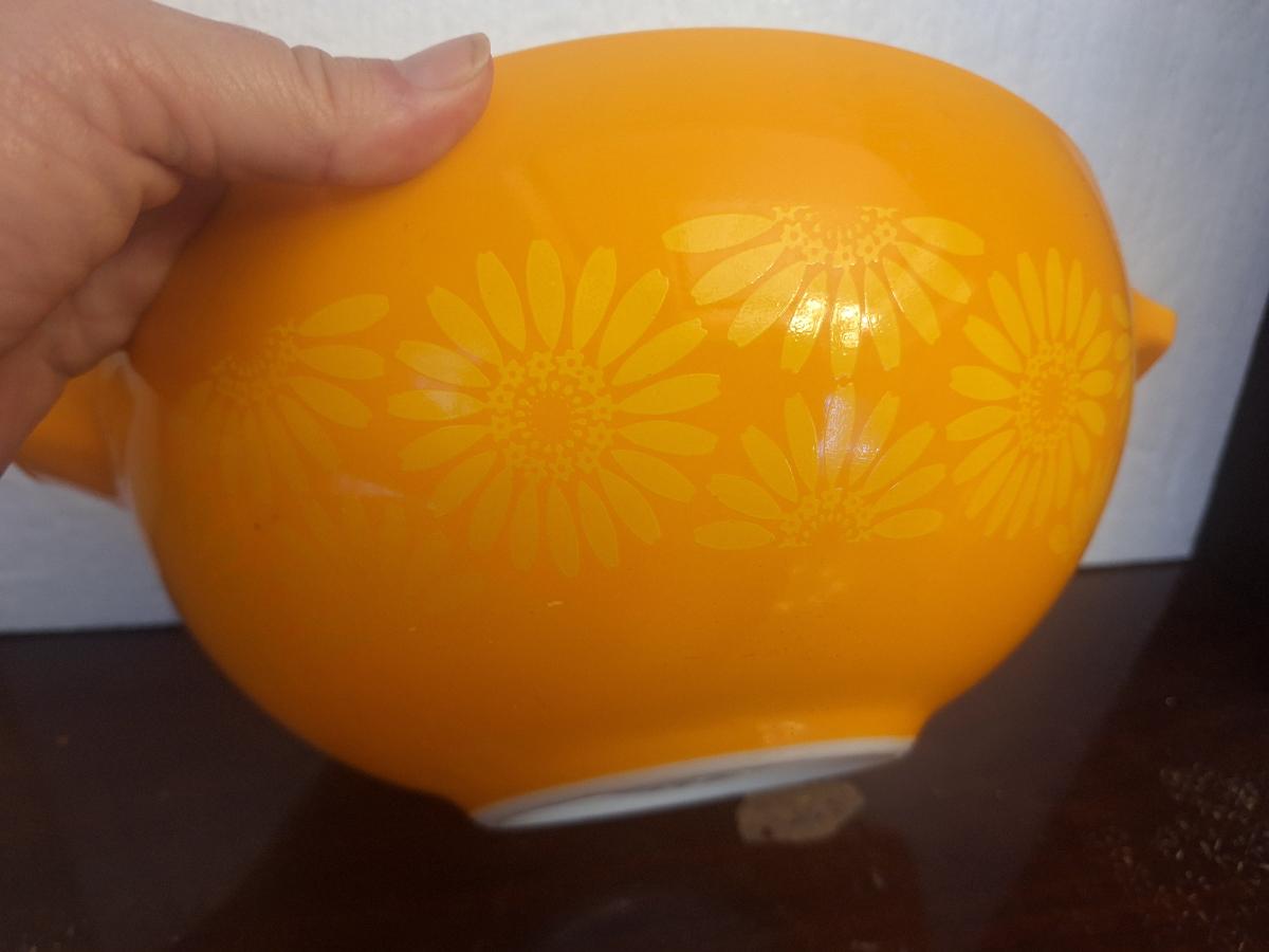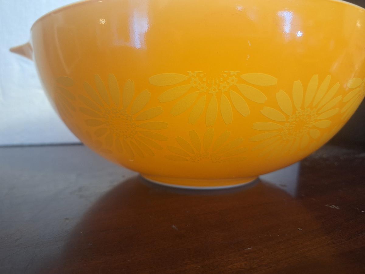 vintage Pyrex mixing bowl 4 sq #444 Orange yellow sunflower daisy Cinderella bowl
