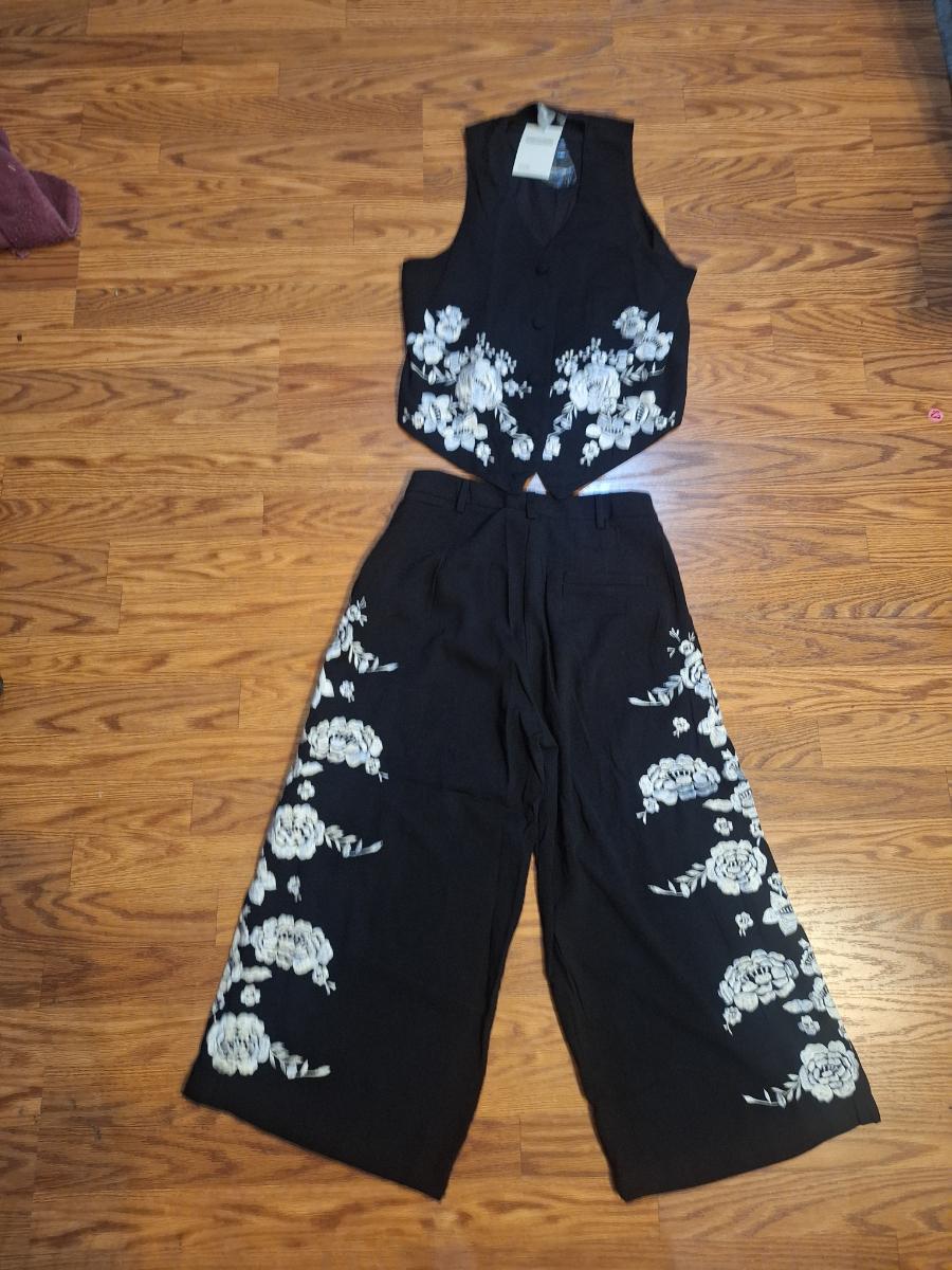 2 pc outfit size 10p New with tags black with white floral embellishments