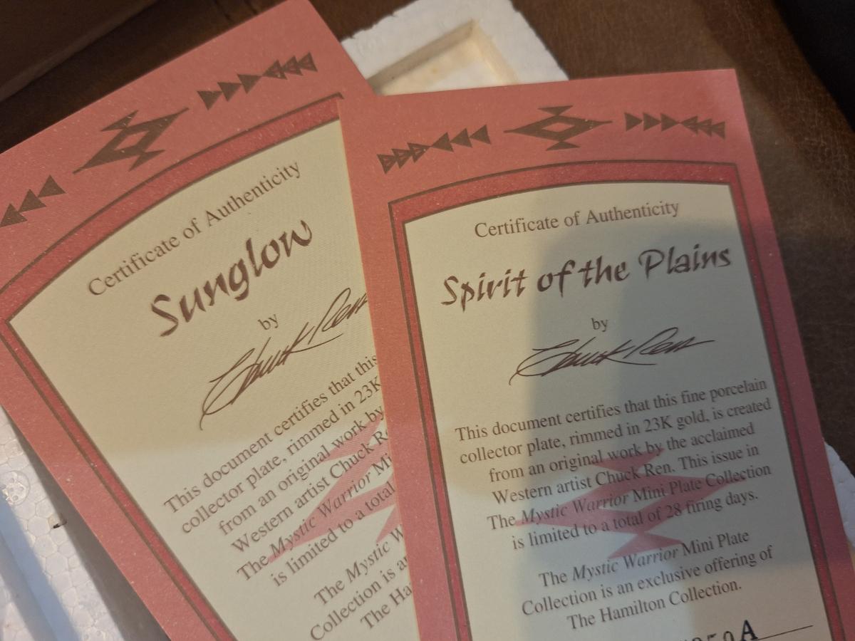 Mystic warrior mini plates by Chuck Ren from Franklin mint- certificates included see photos for specifics- multiple listings, different titles.