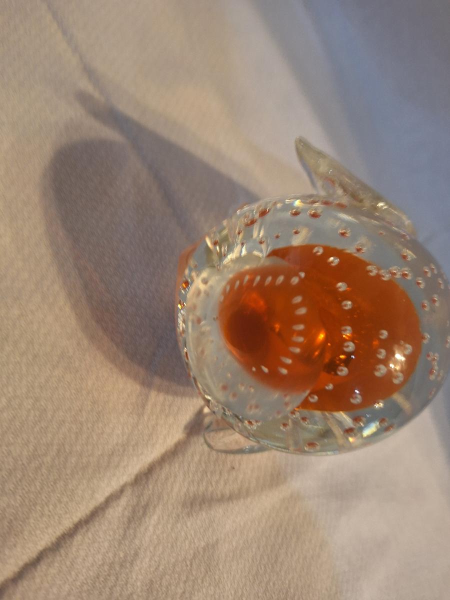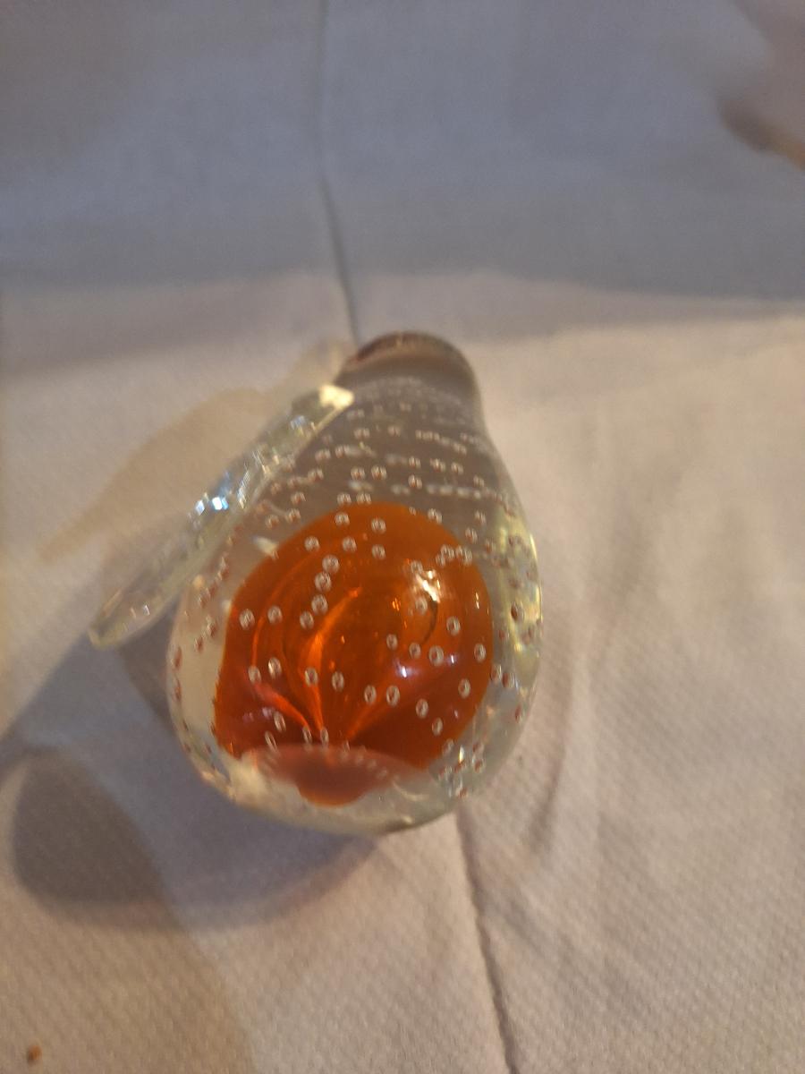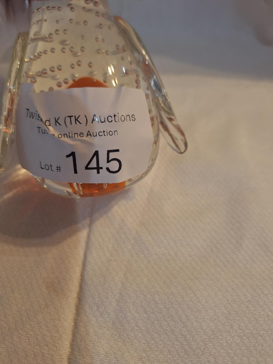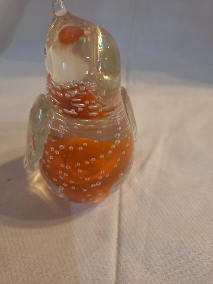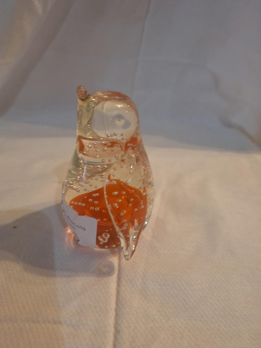 blown glass penguin with bubbles and orange center