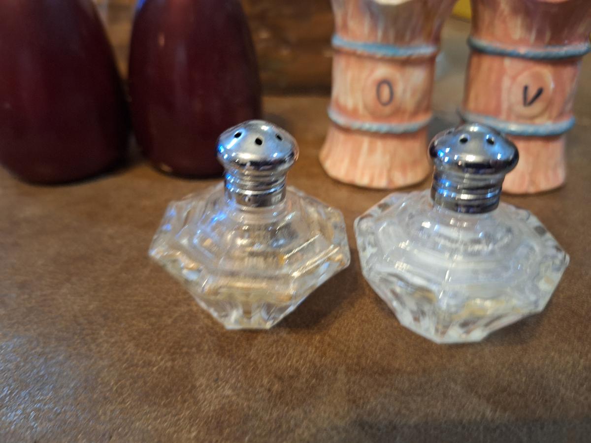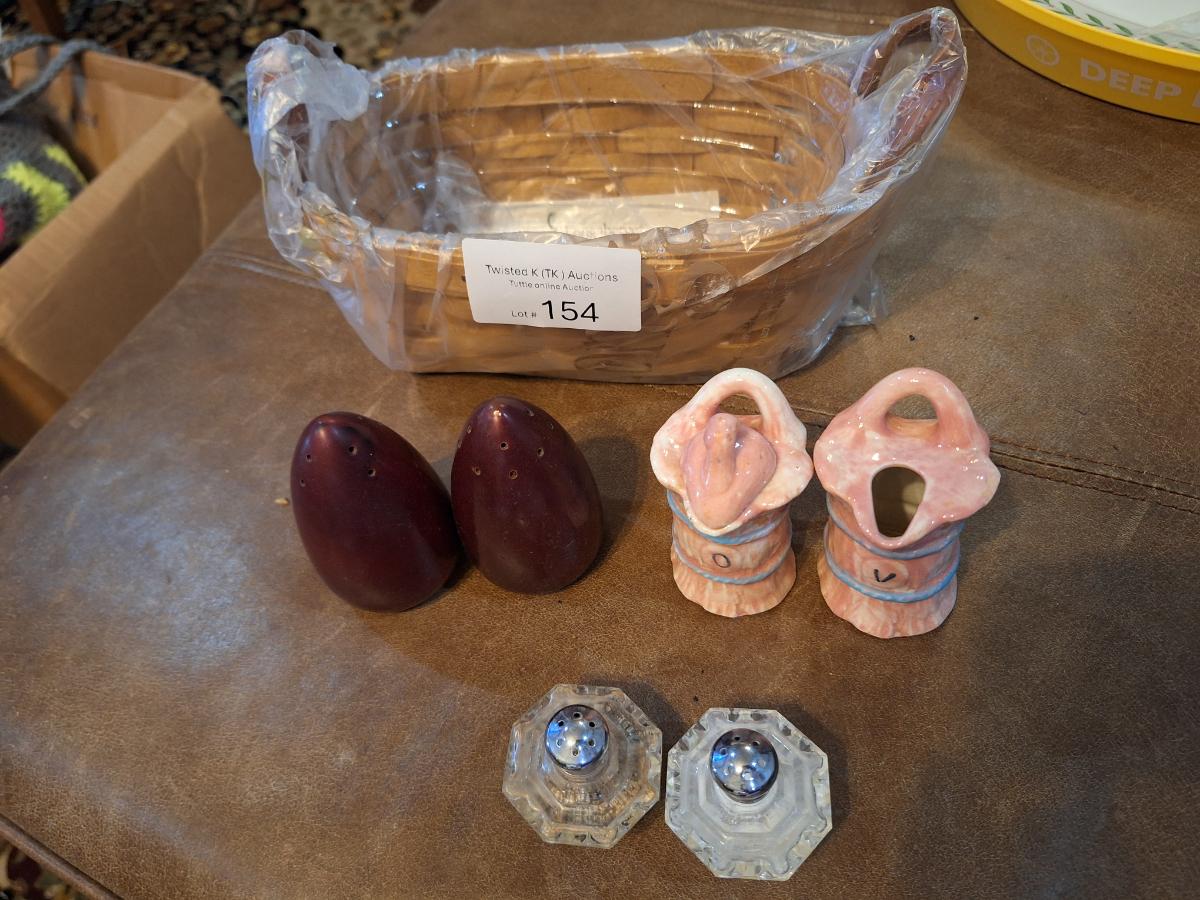 salt and pepper shakers, oil and vinegar bottles and Longaberger basket