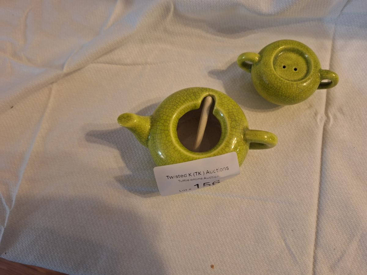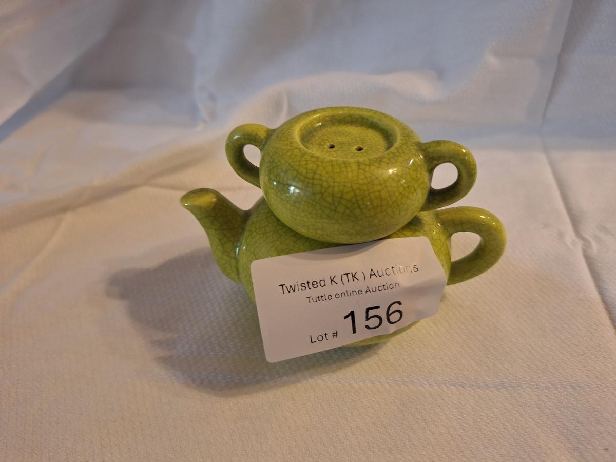 ceramic kettle the top one is a salt shaker the bottom is for something else.