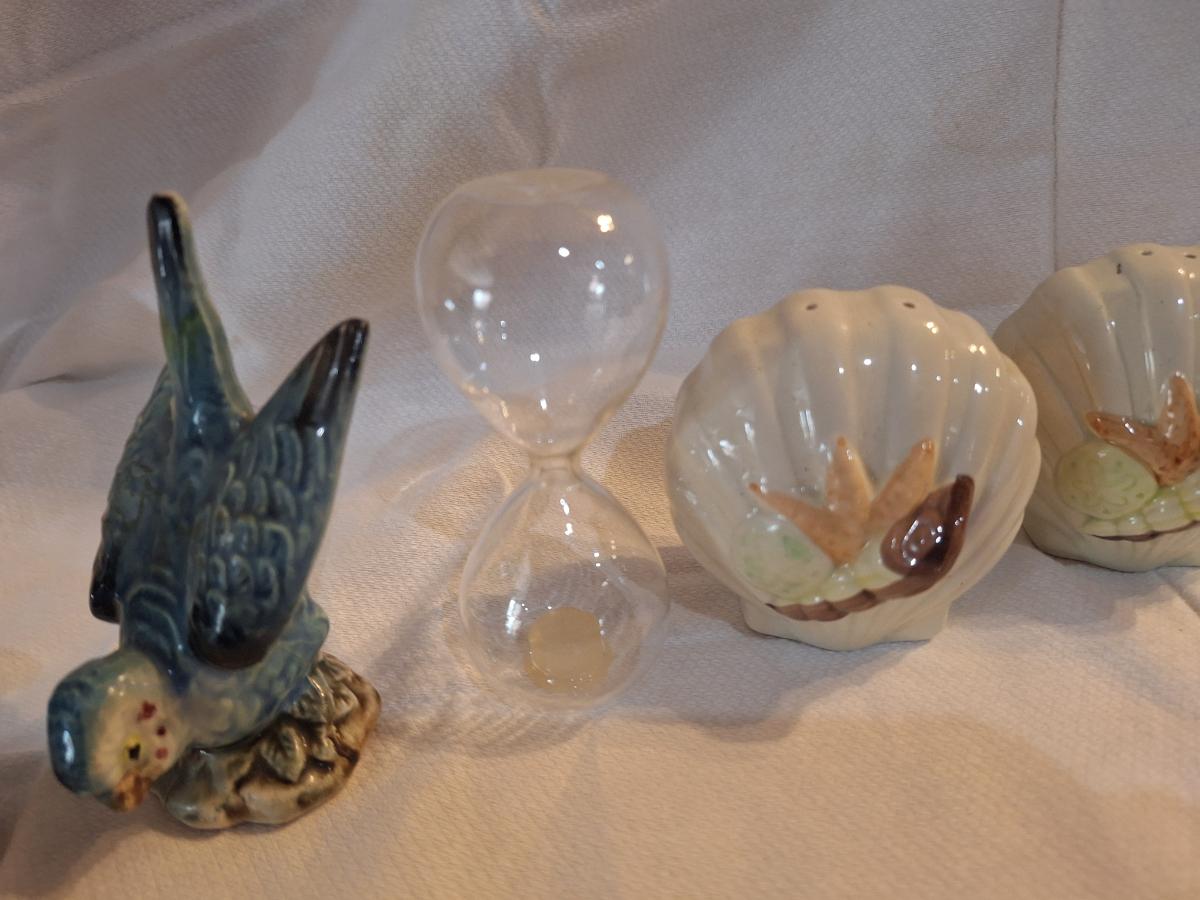 the hour glass shaker probably has a mate that may show up in another lot…keep an eye out for it.
