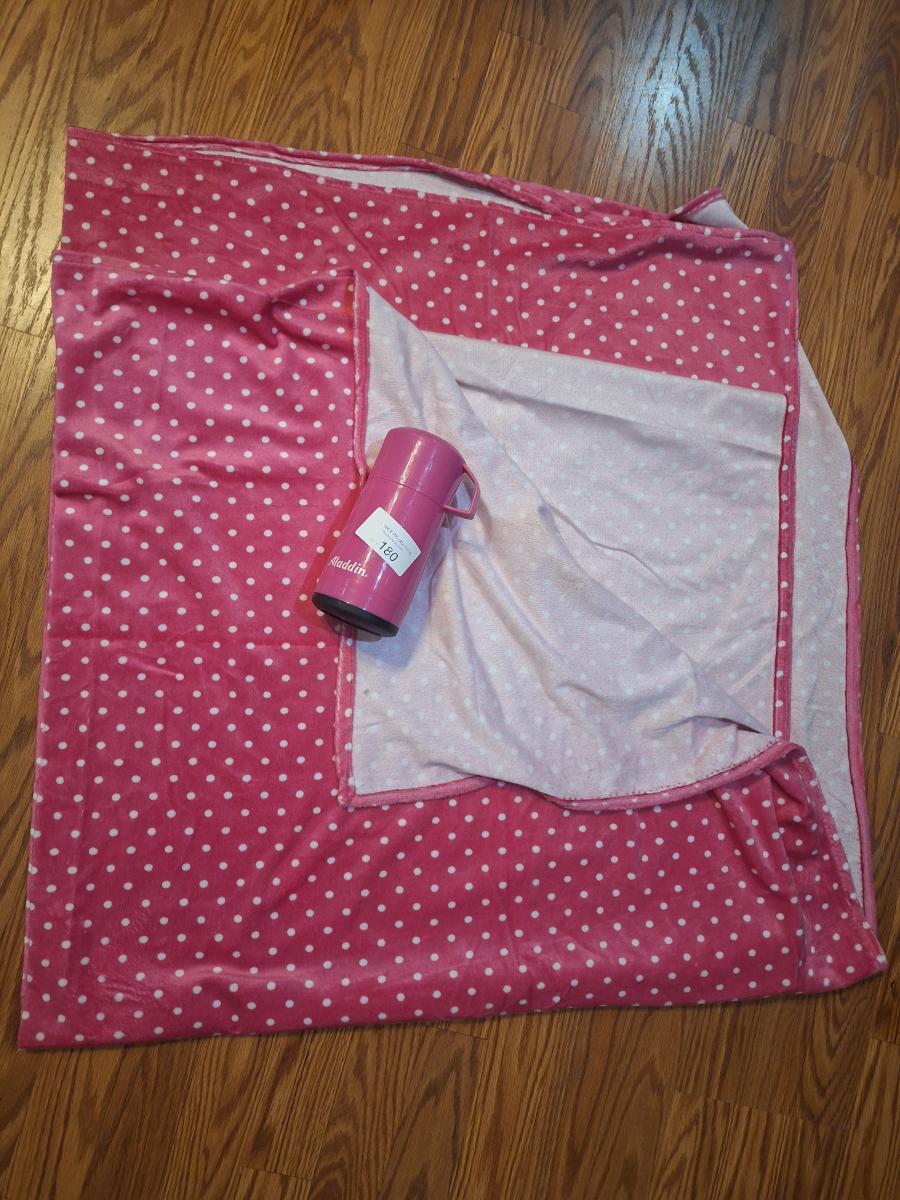 pink blanket and thermos