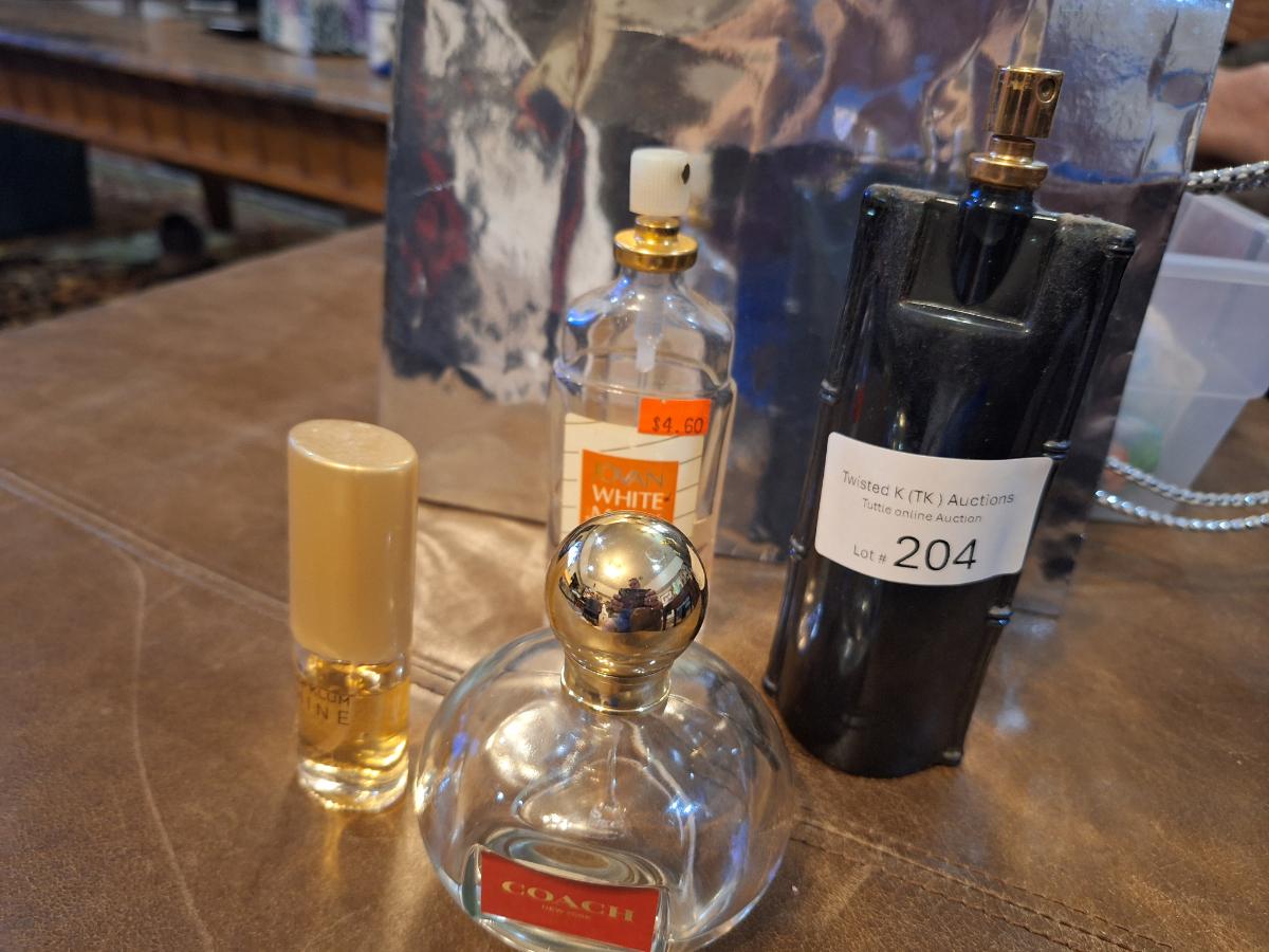 4 bottles of perfume, the coach perfume is approx. 1/4 full