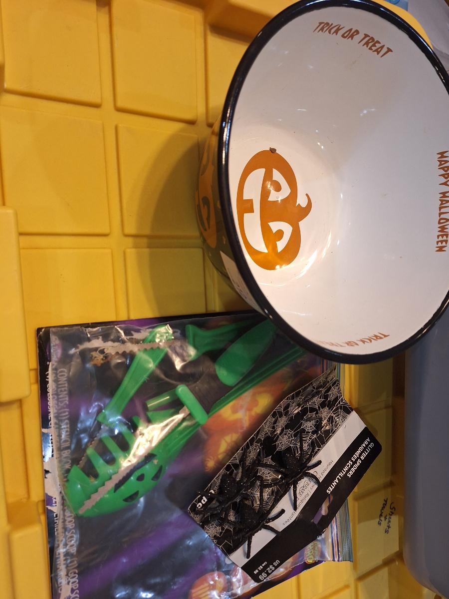 Halloween bundle, candy dish, spiders and carving tools with booklet