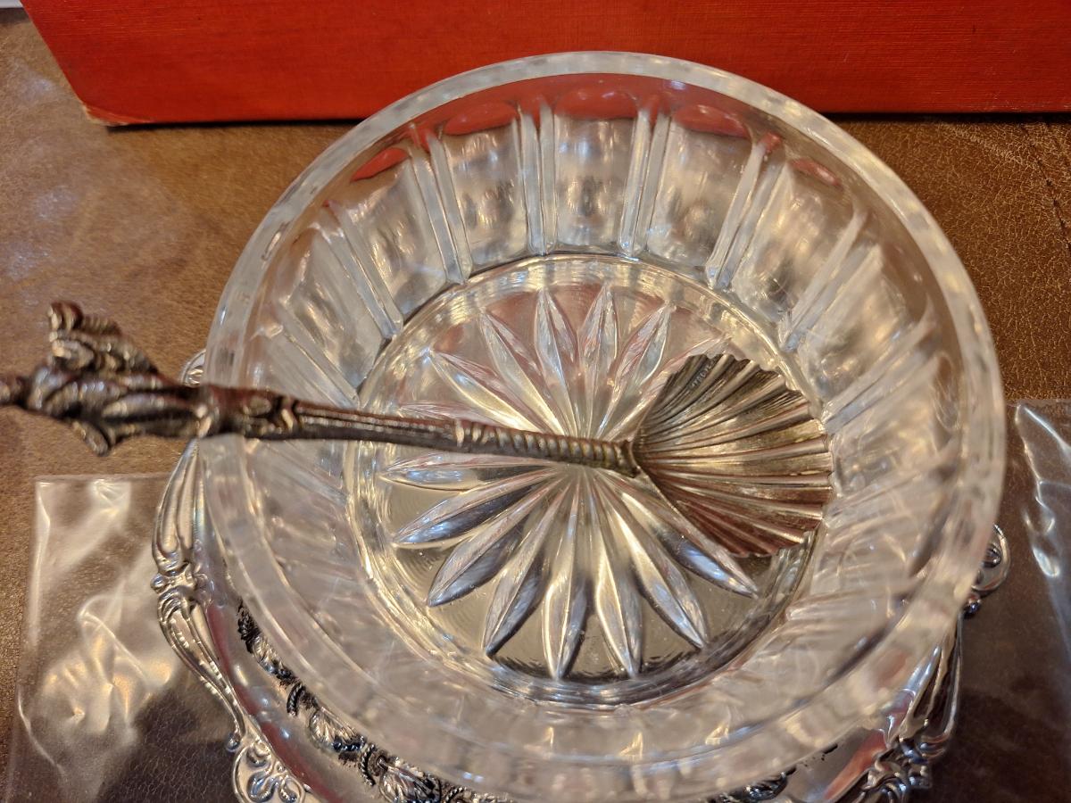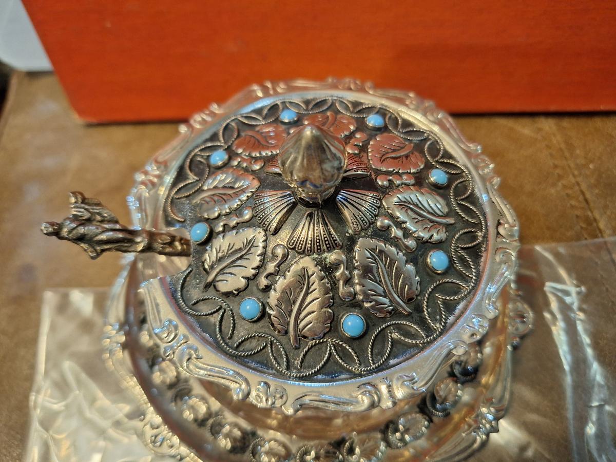 glass and silverplate sugar bowl