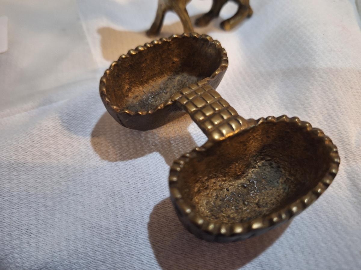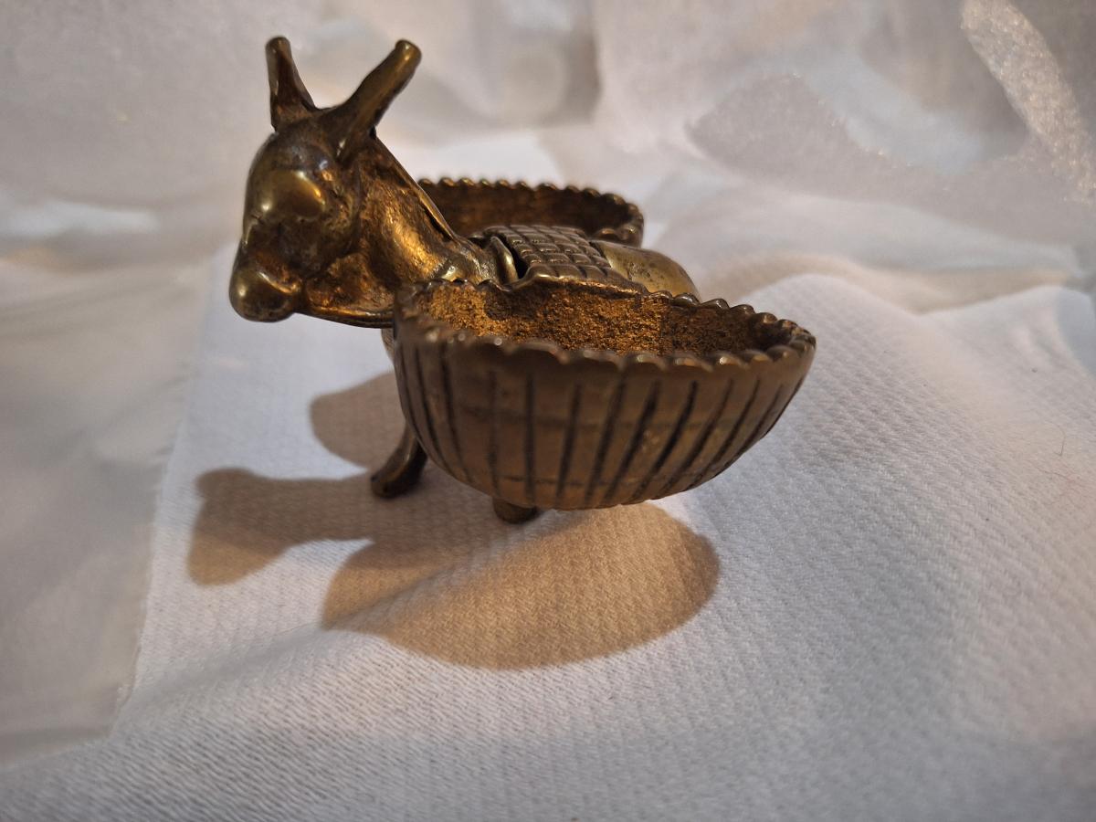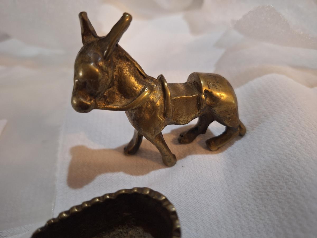 small brass donkey with baskets