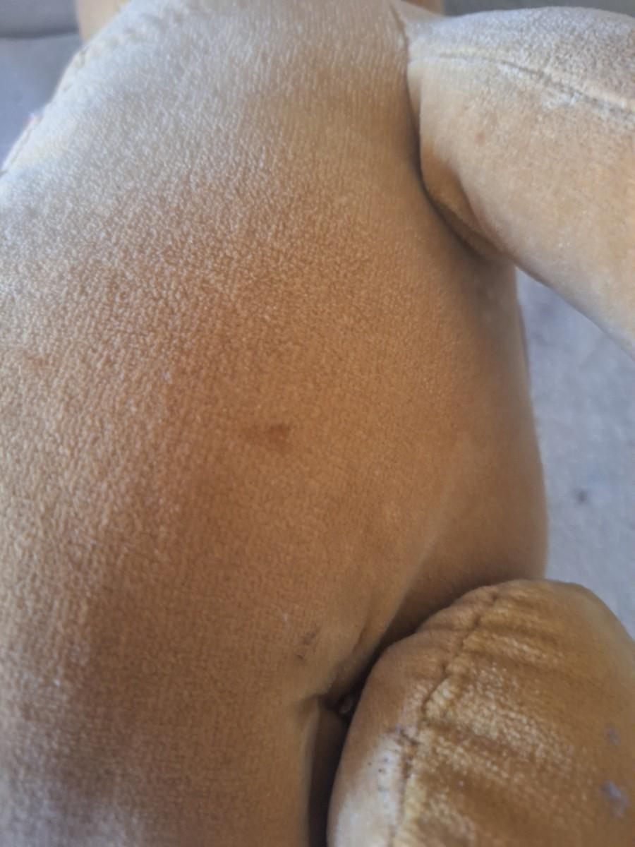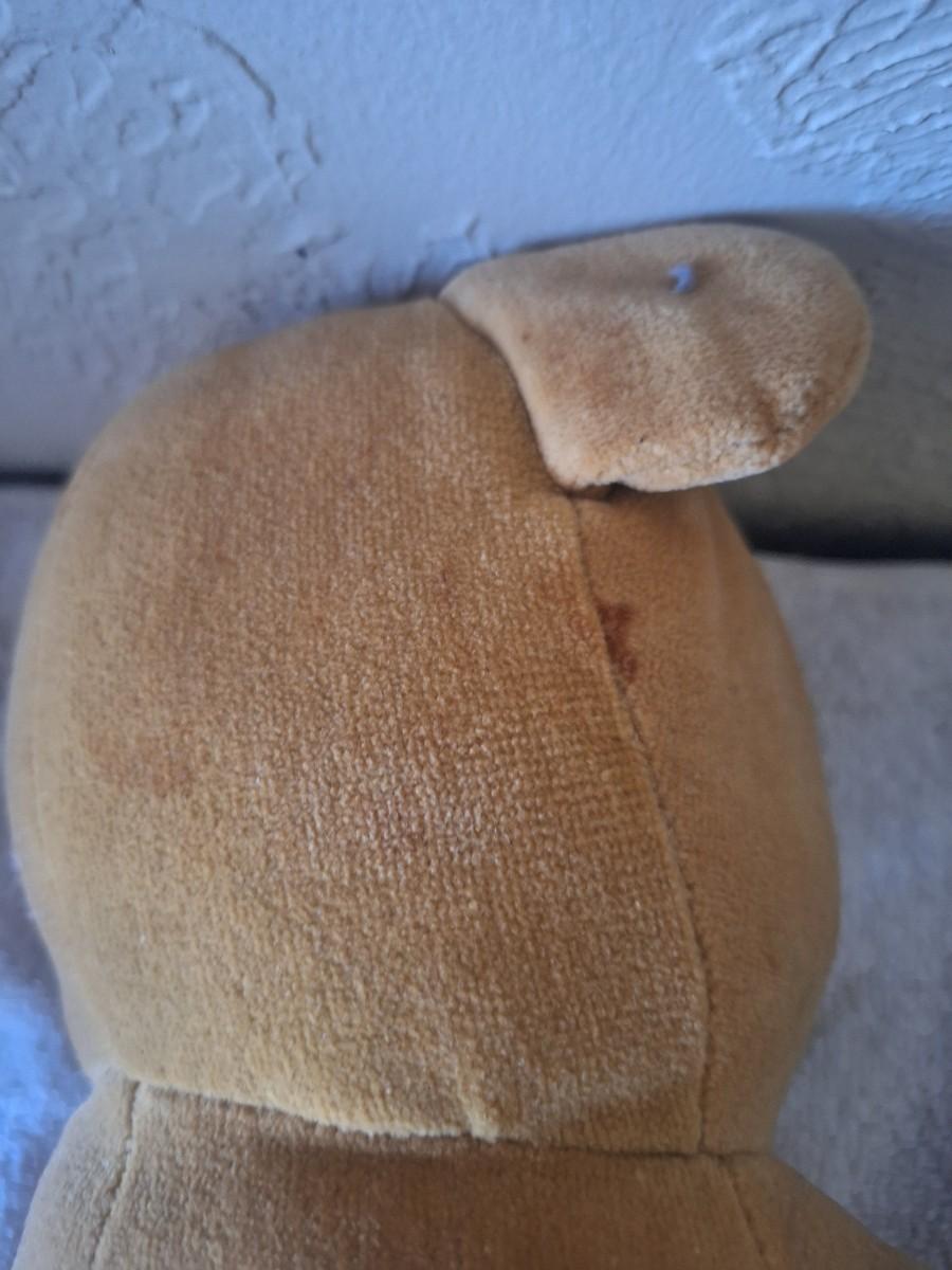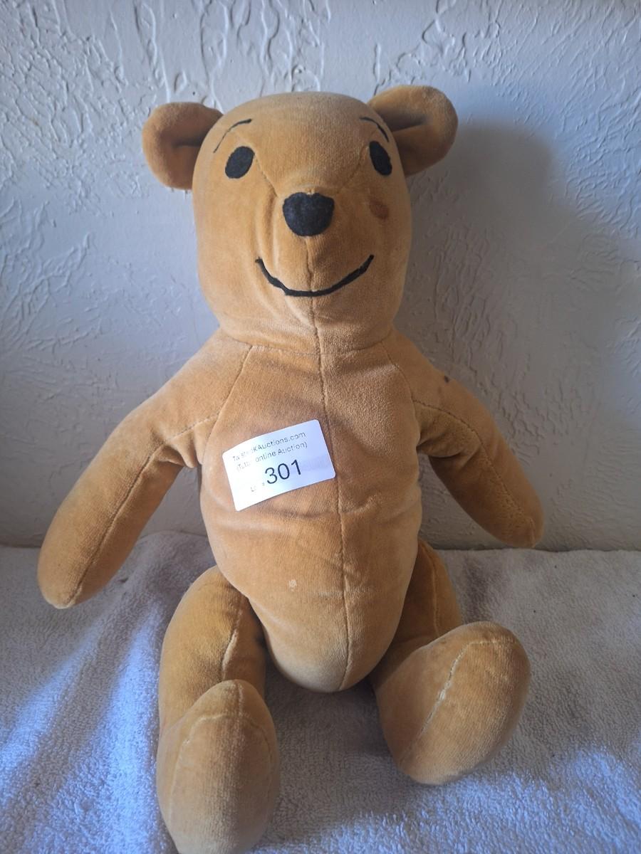 this is a vintage bear, it has some light stains on the head in front and in back. Please see all photos. We don't know if this is a Winnie the pooh bear or just a bear that looks similar.