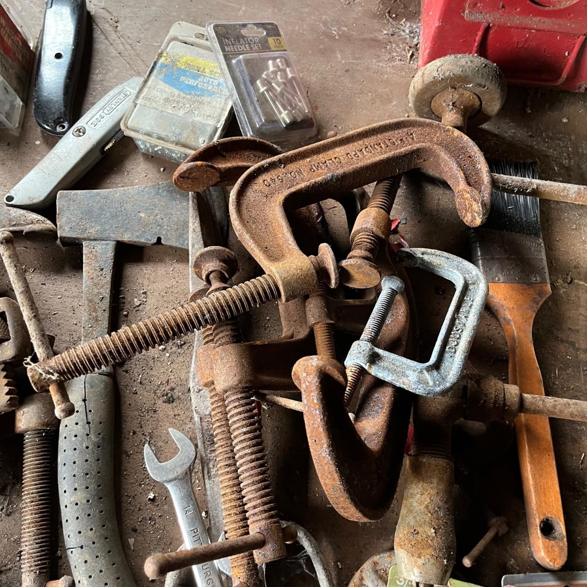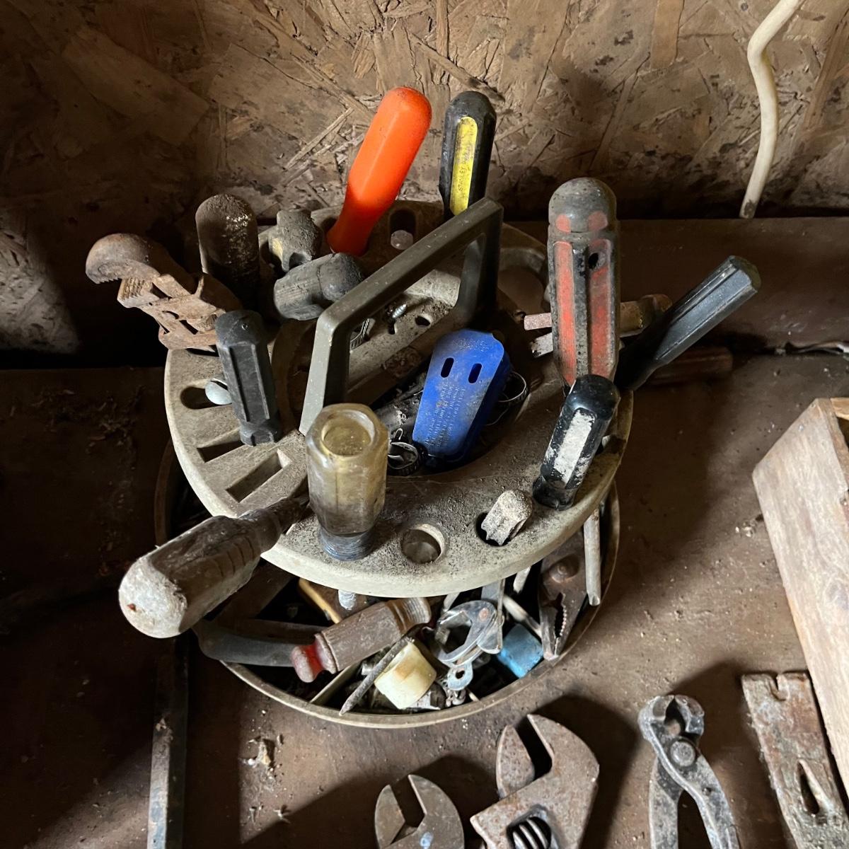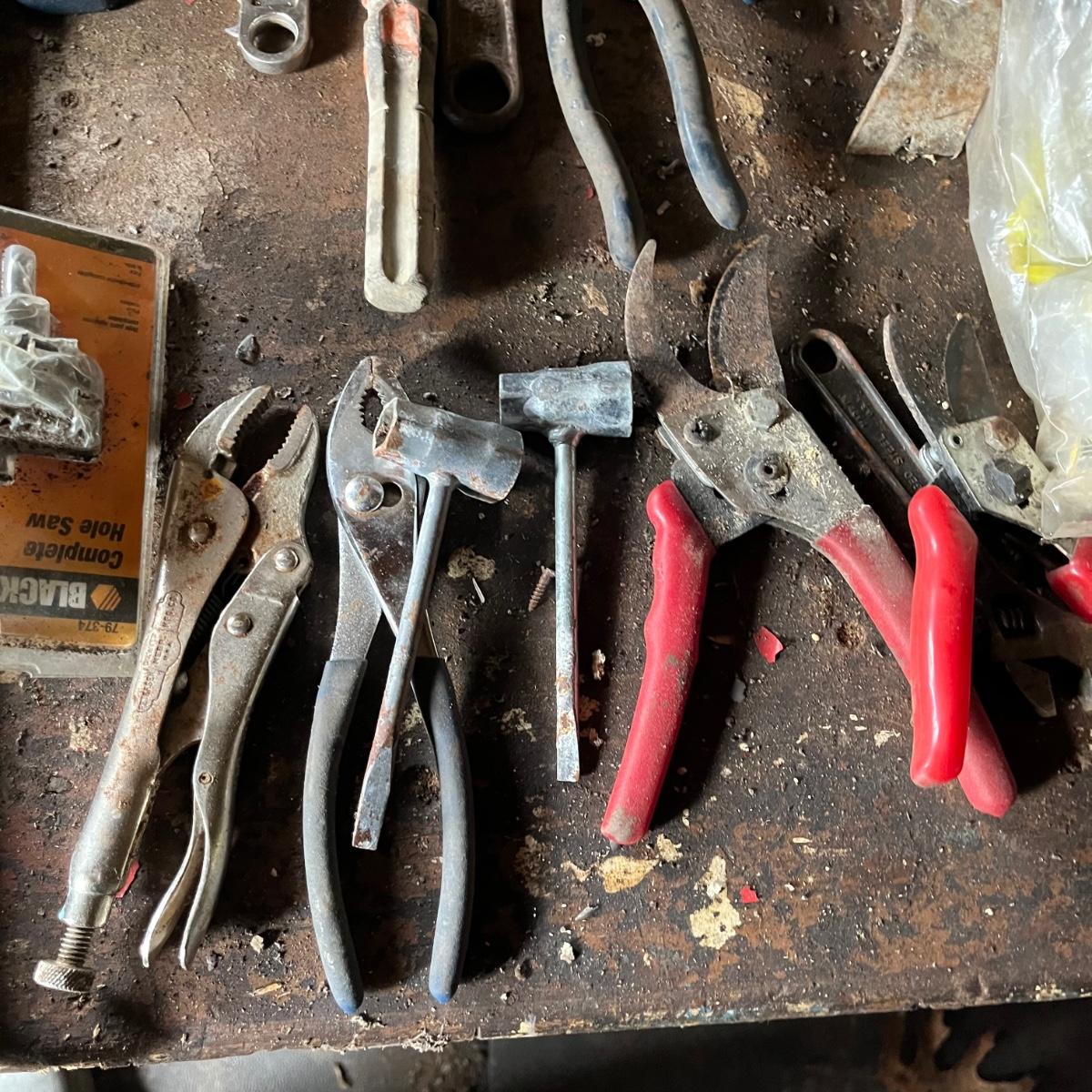 Lot contains a plethora of hand tools including Craftsman ratchets, Kobolt pliers, screwdrivers, 14” tile cutter, pipe wrenches, C clamps, adjustable wrenches and more. Also includes a assortment of hardware.