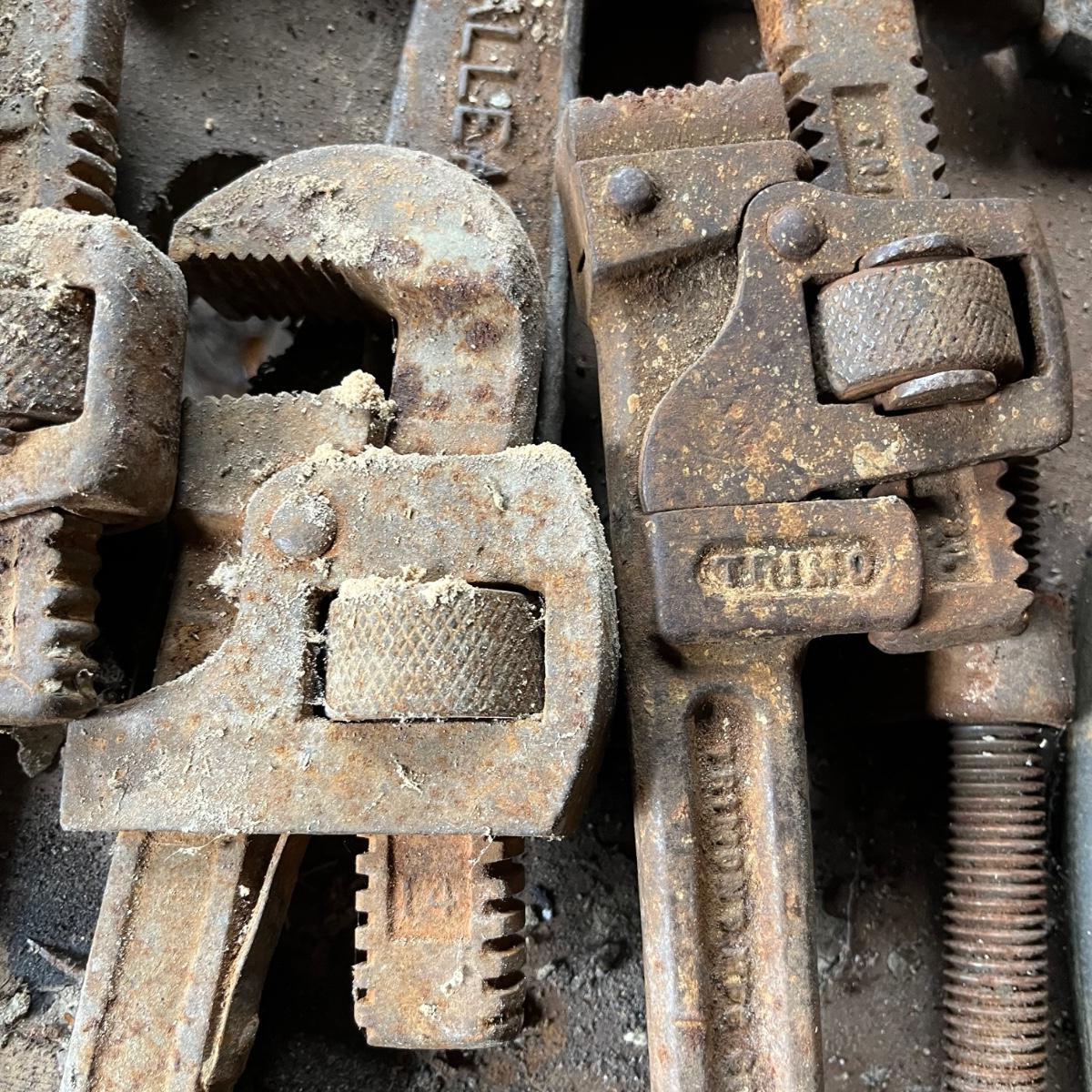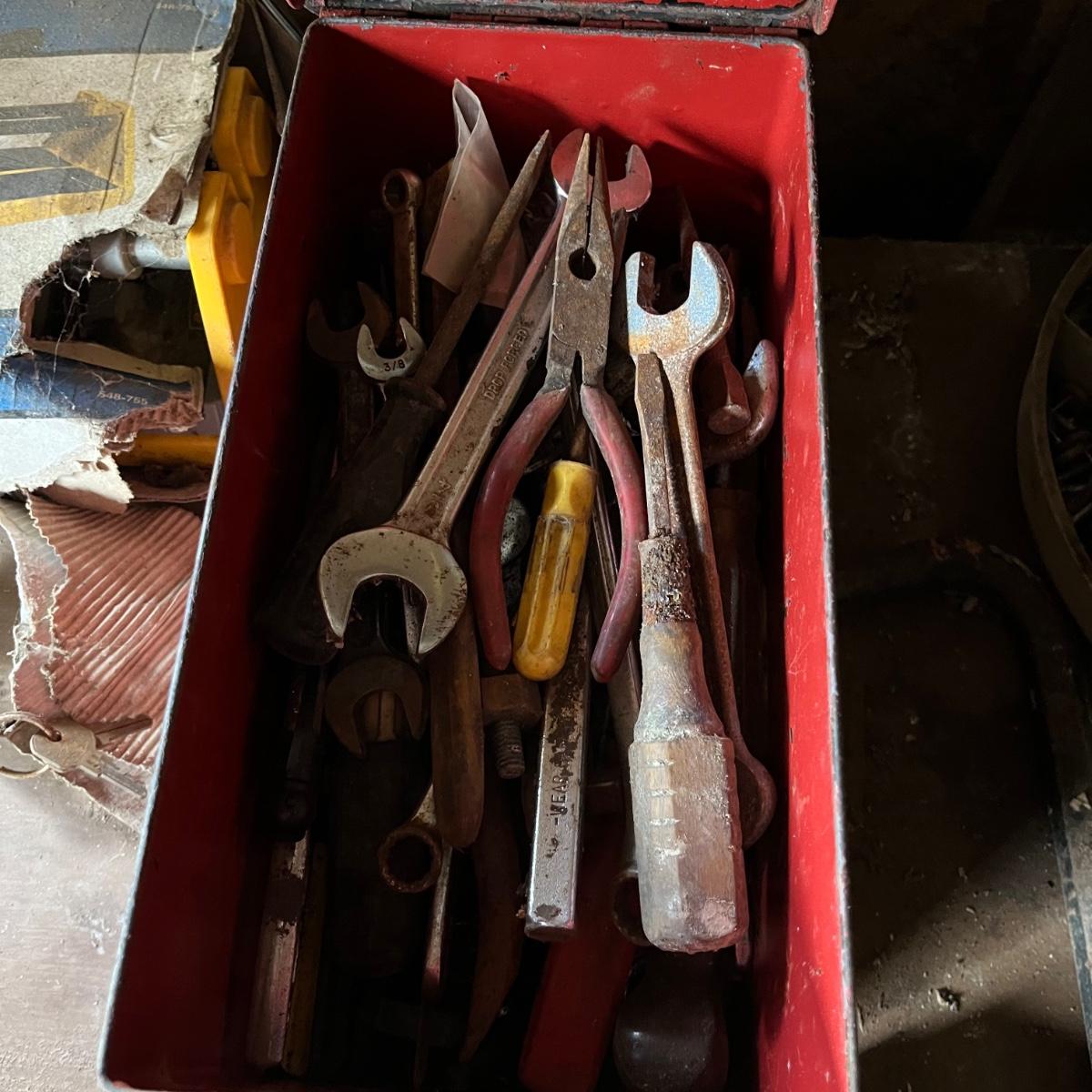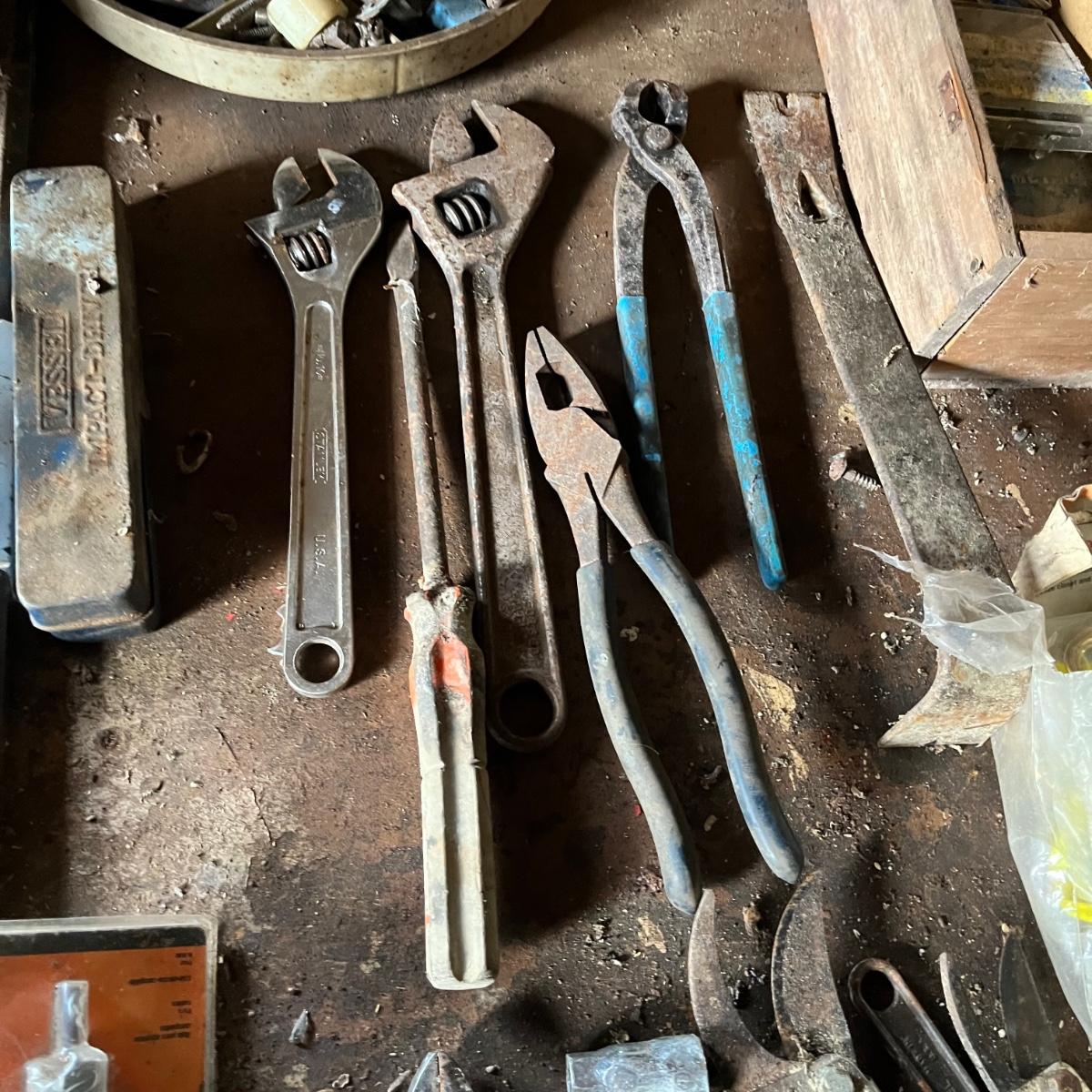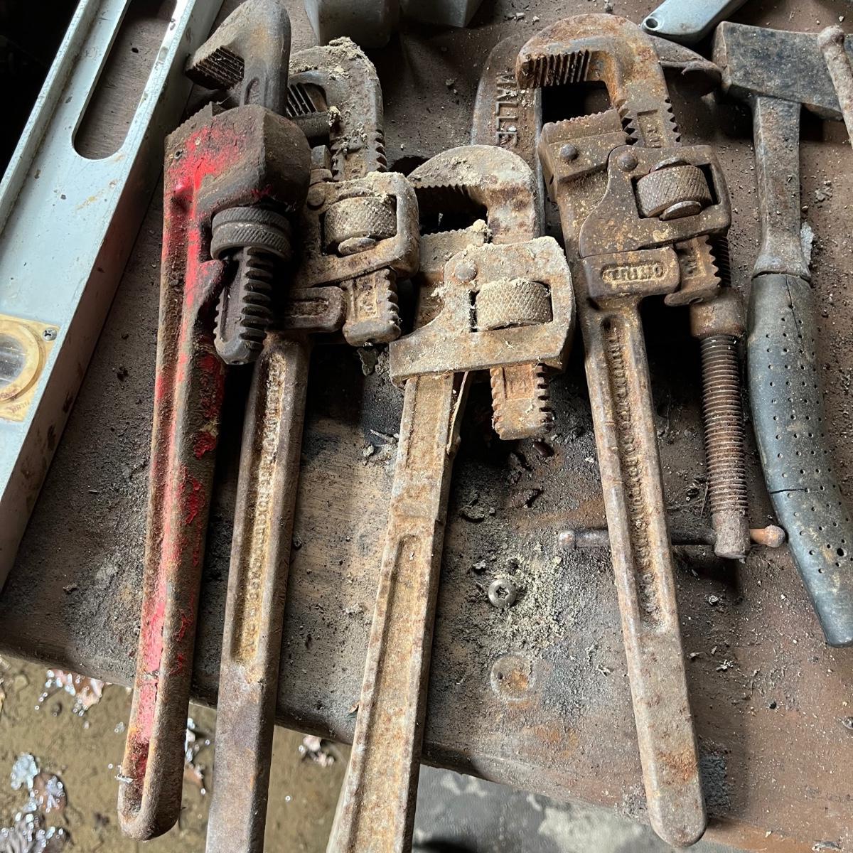 Lot contains a plethora of hand tools including Craftsman ratchets, Kobolt pliers, screwdrivers, 14” tile cutter, pipe wrenches, C clamps, adjustable wrenches and more. Also includes a assortment of hardware.