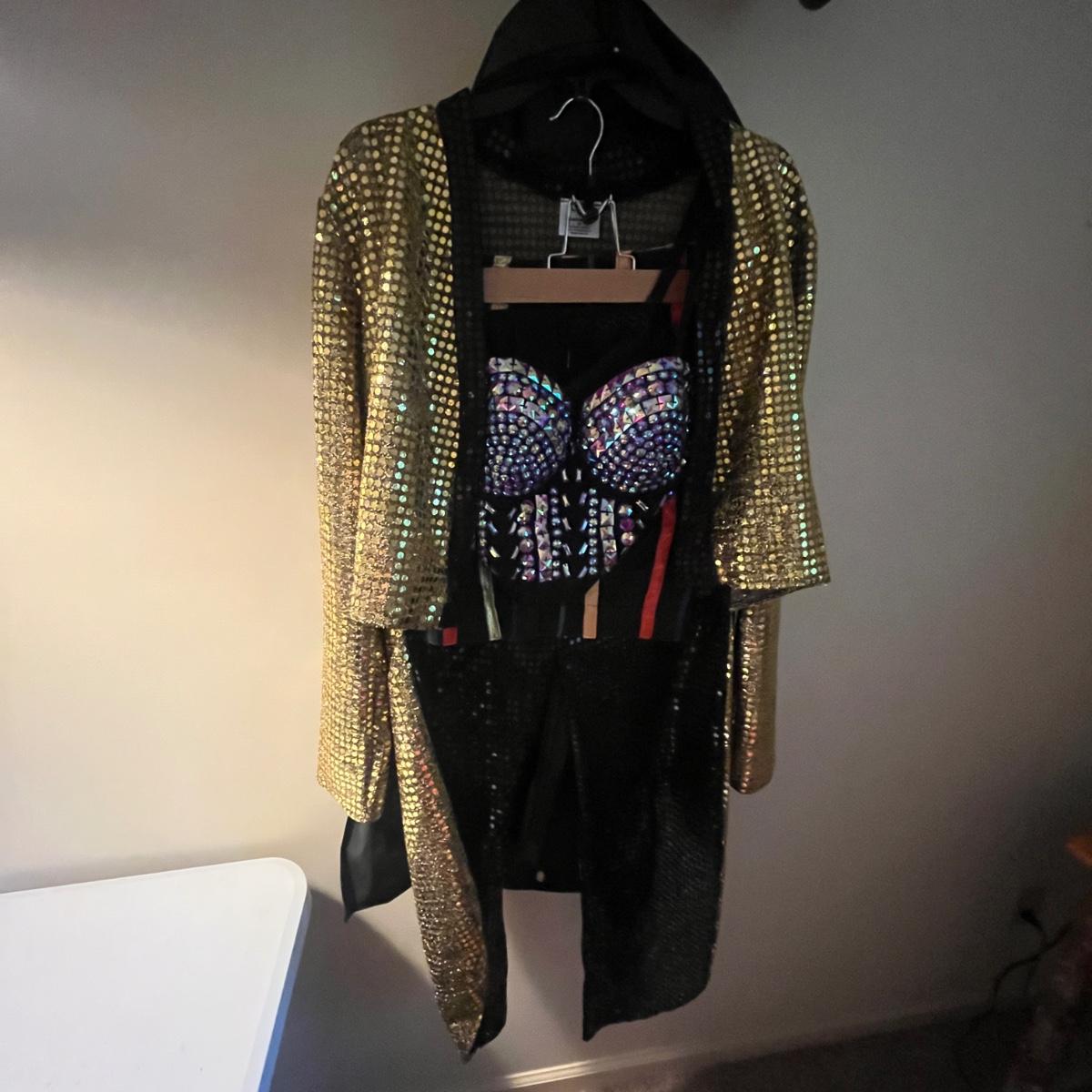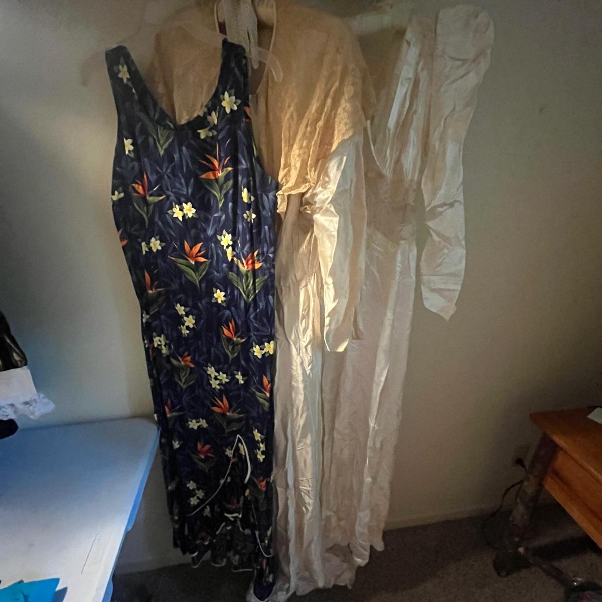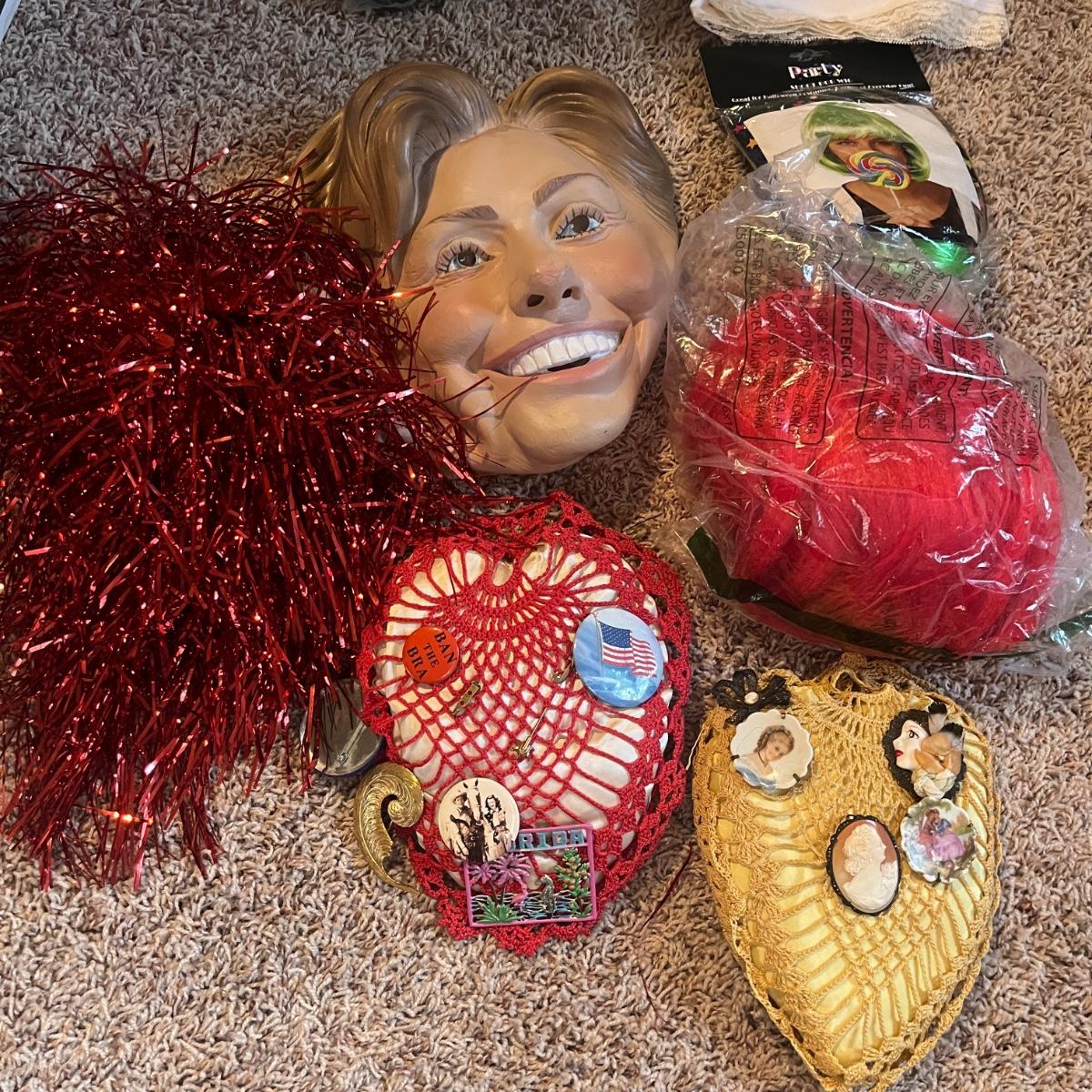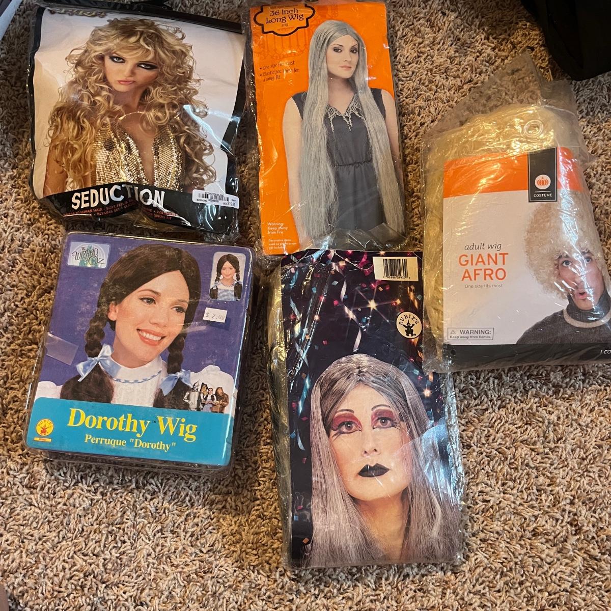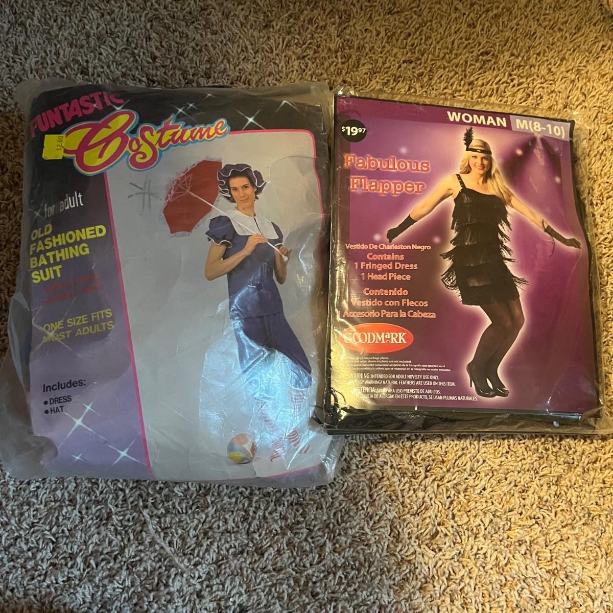 Lot contains a plethora of ladies costumes including swashbuckler outfit, butterfly, bee, belly dancer, cocktail dresses, wigs, hats, chaps, two sets of angel wings, safari hat and more. Most items appear to be medium to large.