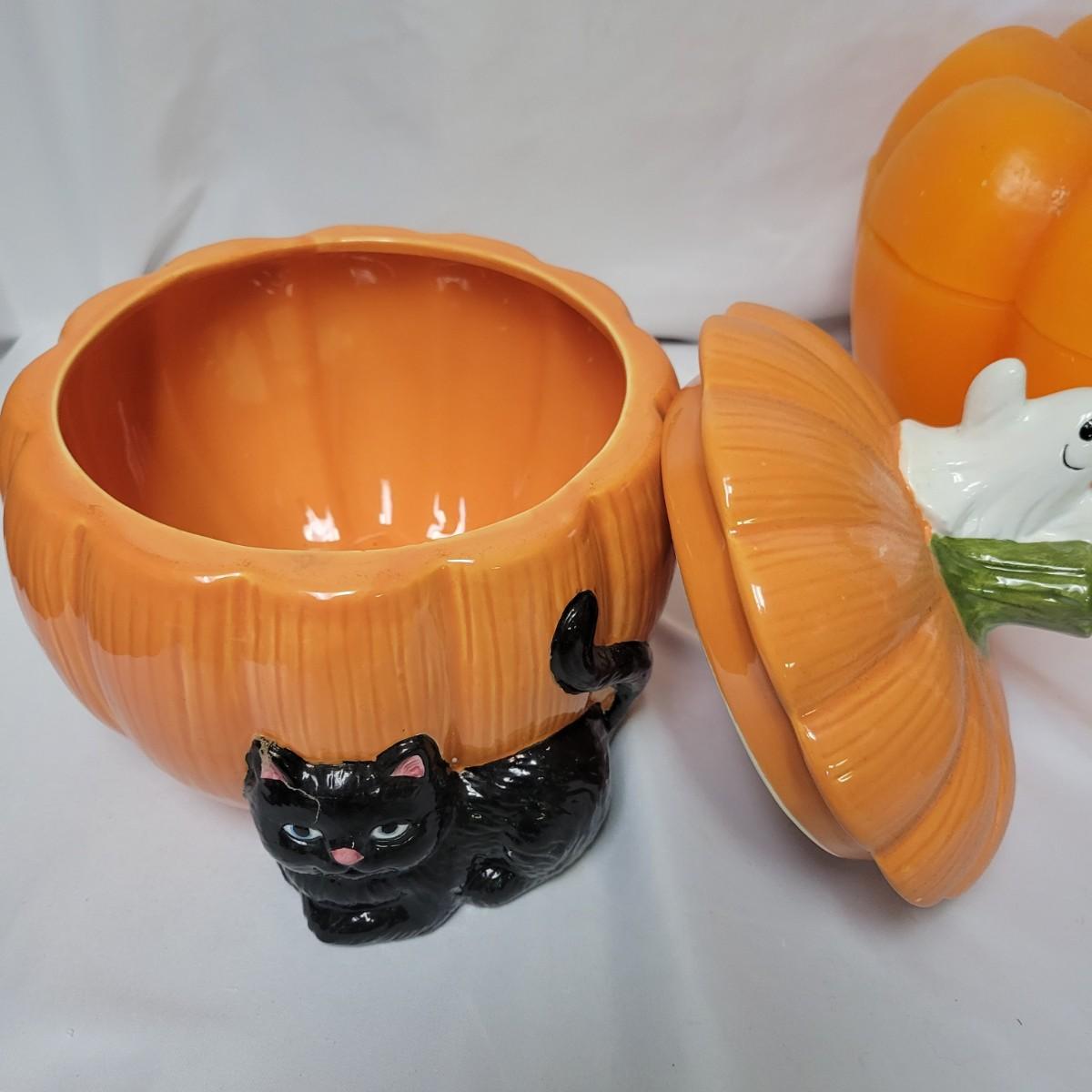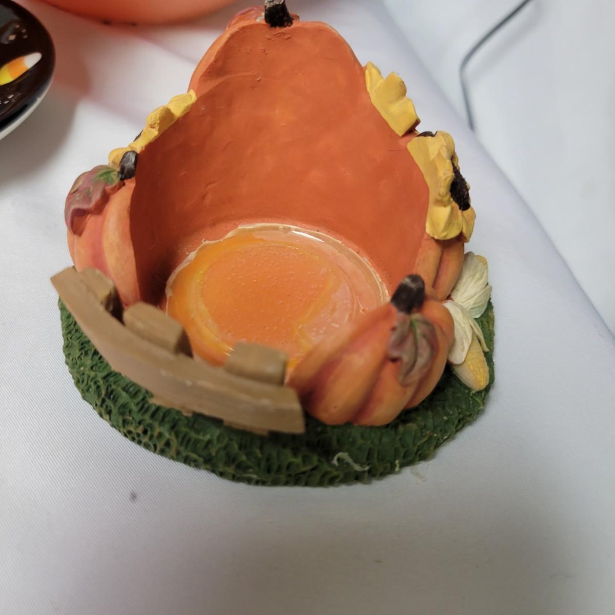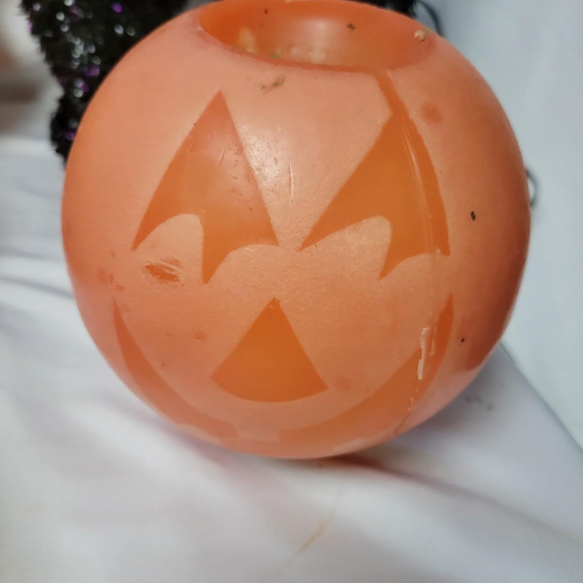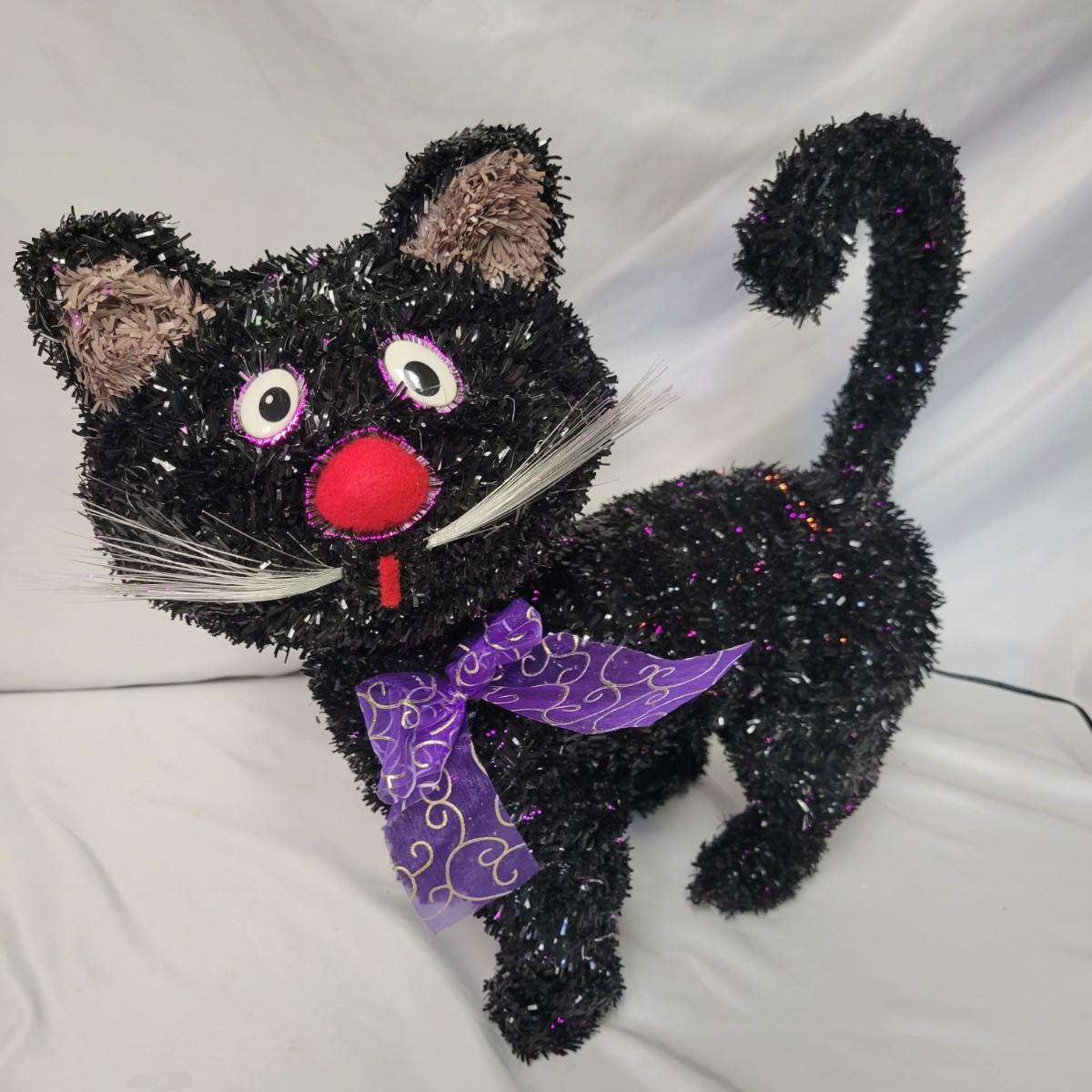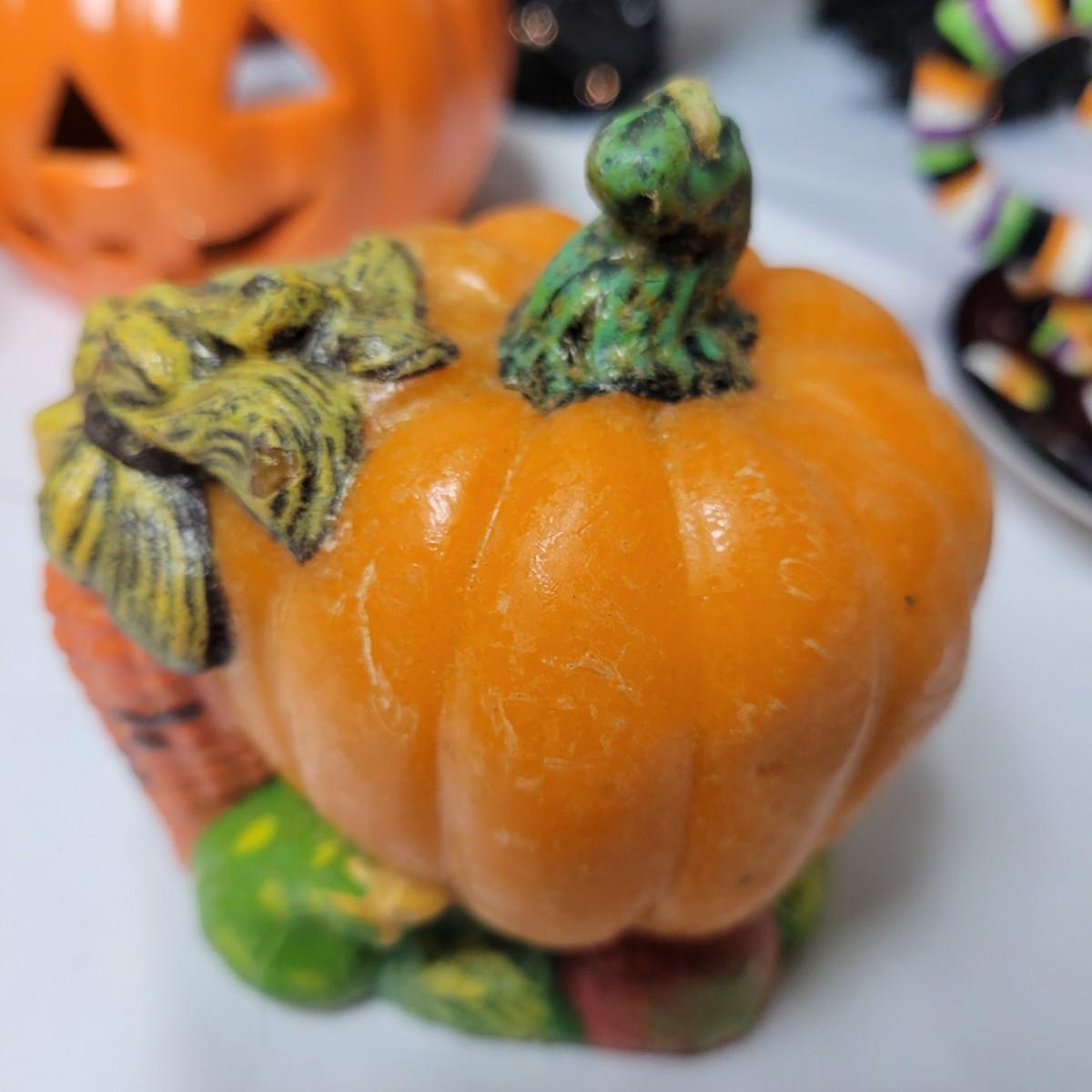 An assortment of Halloween items in good condition, although some of the candles have been lightly used. Included is a cornucopia of pumpkins. Some are ceramic, most are scented candles. A spooky serving bowl, a coffee cup and saucer is also included. A fiber optic motion black cat is also in this lot. Item was tested and works and measures approximately 13" x 5.5" x 14". Local pickup only