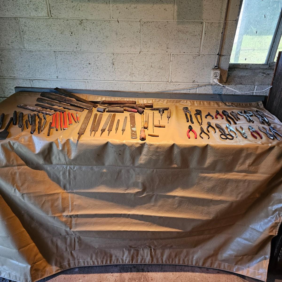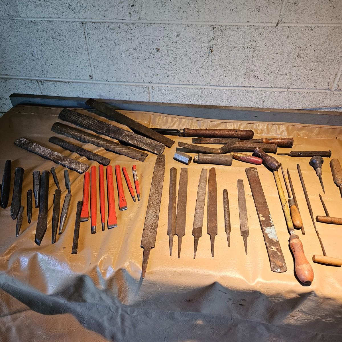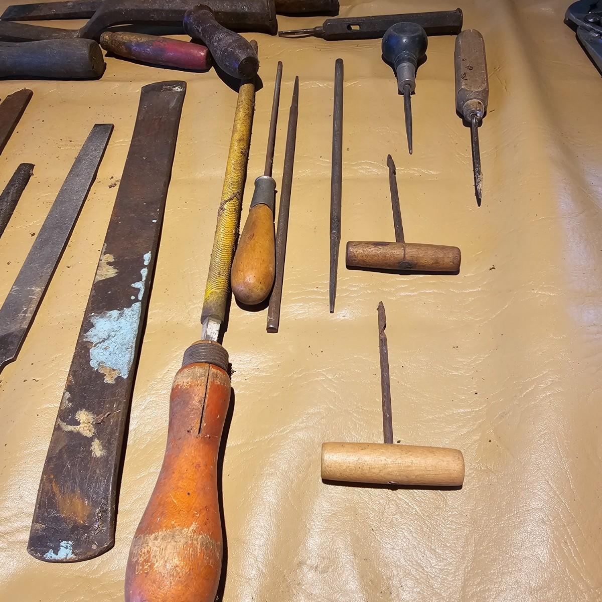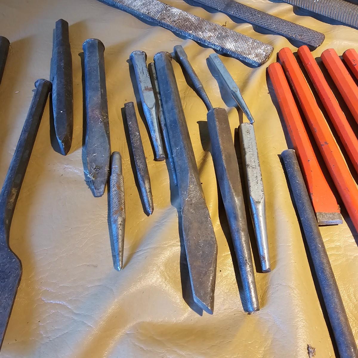 More hand tools, this time assortments of pliers and more. Standard pliers, vice grips, needlenose, channel locks, more. Also includes standard files, wood rasps, drifts, punches, chisels, awls, more. Some items need tlc, see photos for details. Shipping available.
