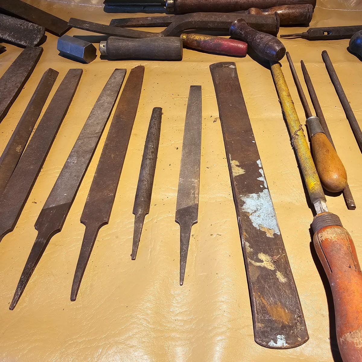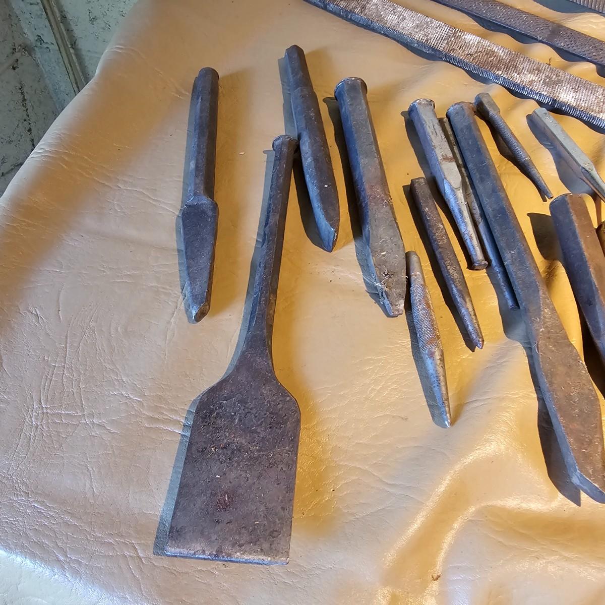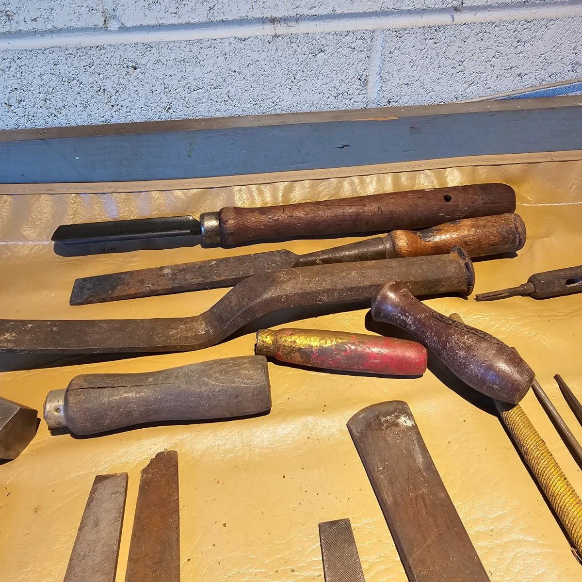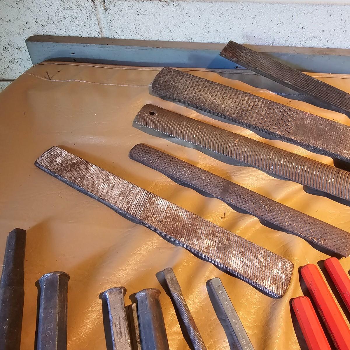 More hand tools, this time assortments of pliers and more. Standard pliers, vice grips, needlenose, channel locks, more. Also includes standard files, wood rasps, drifts, punches, chisels, awls, more. Some items need tlc, see photos for details. Shipping available.