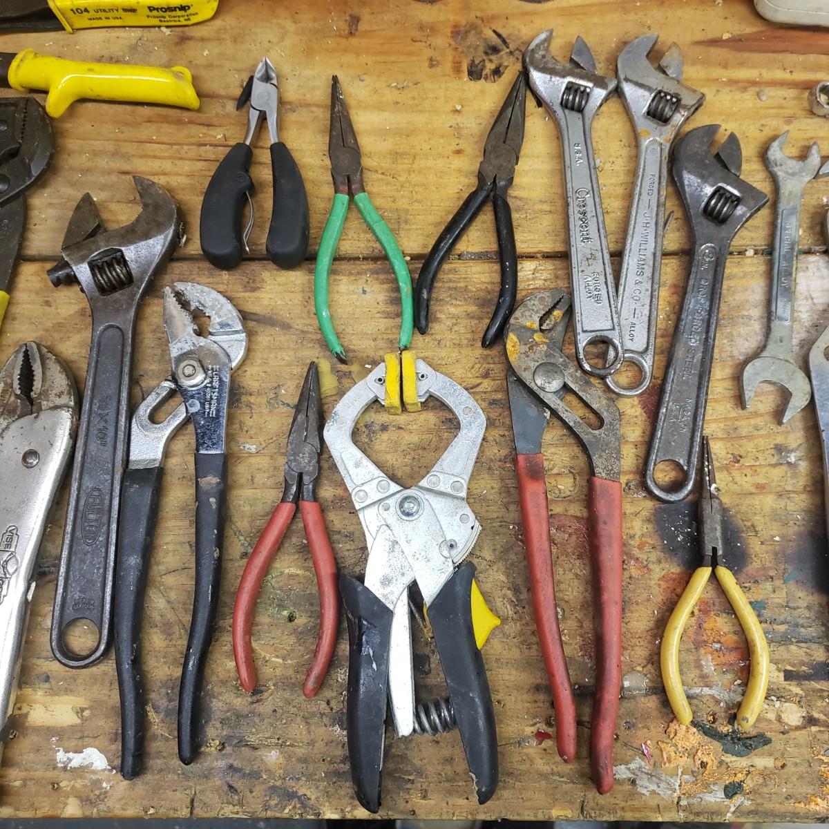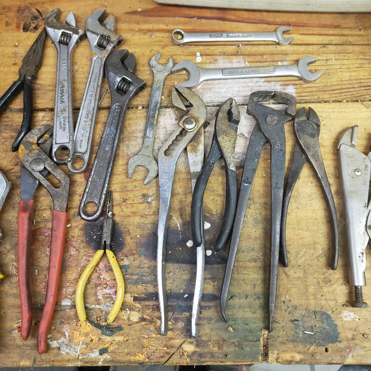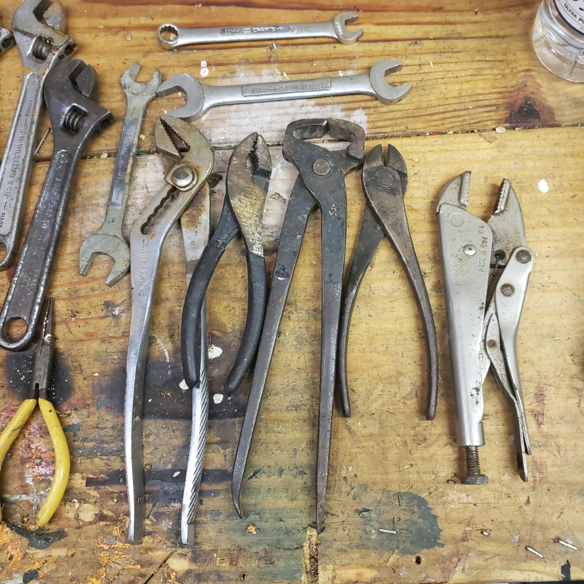 This 37 piece lot of Craftsman, Fulton, and more has pliers, vise grips, tin snips, wrenches and more! See pictures for details.