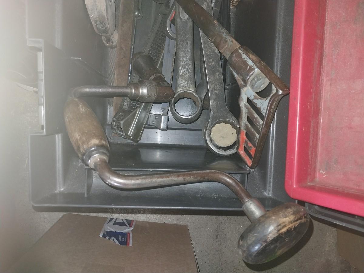 PLASTIC TOOLBOX FILLED WITH MICSELANEOUS TOOLS