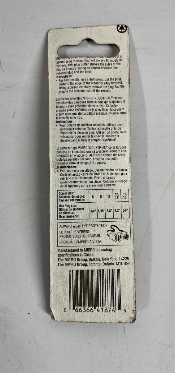 3 plug cutters: 1/2”, 3/8”, and 5/16” cutters new in packages.