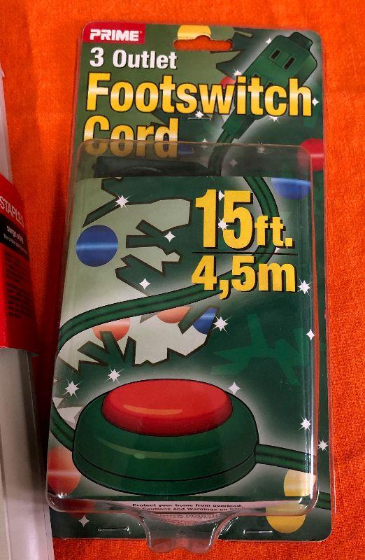 3 Outlet Footswitch Cord 15ft...Power strip and extension cord...as shown..new condition...lot #3