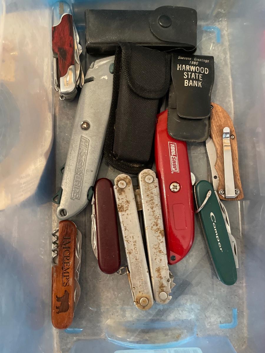 Misc pocket knives and plumbing items