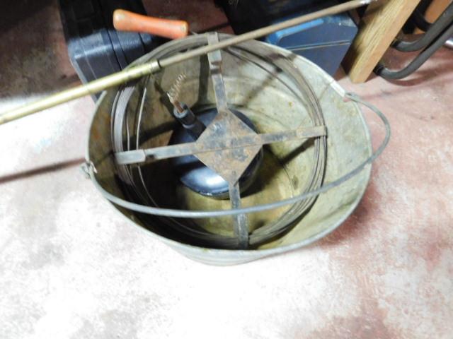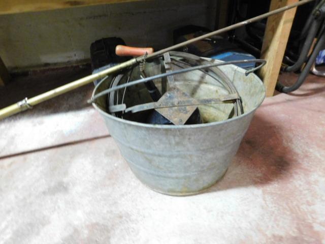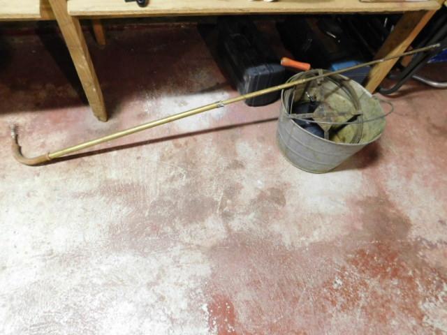 Plumbing Snake and Galvanized Bucket