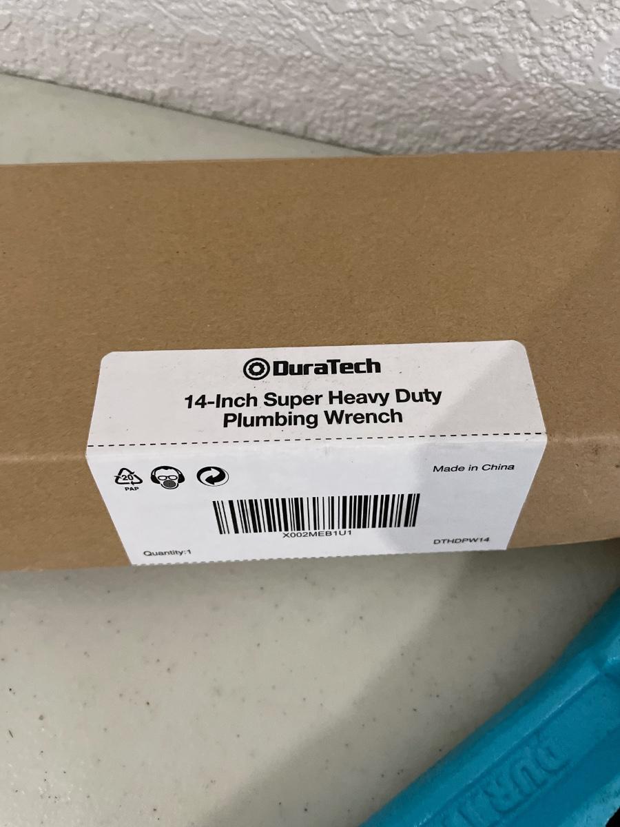 Torque angle gauge and a 14 inch super heavy duty, plumbing wrench